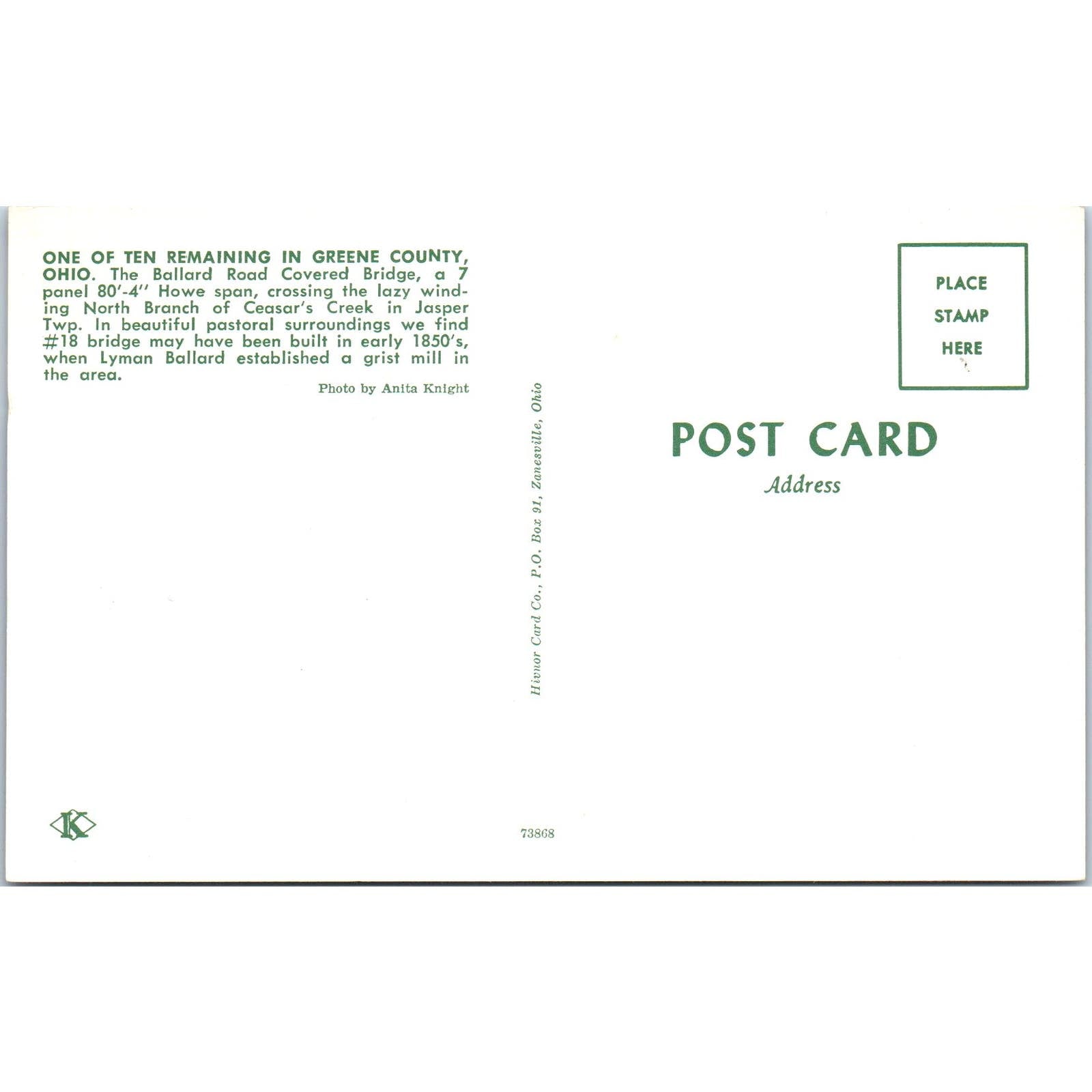 Greene County Ohio 18 Vintage Covered Bridge Postcard PC16