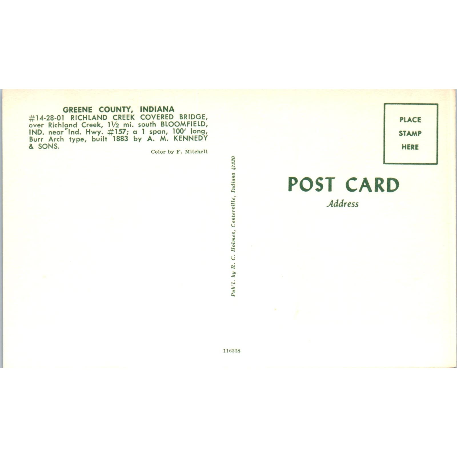 Greene County Richland Creek Bridge Bloomfield IN Covered Bridge Postcard PC8