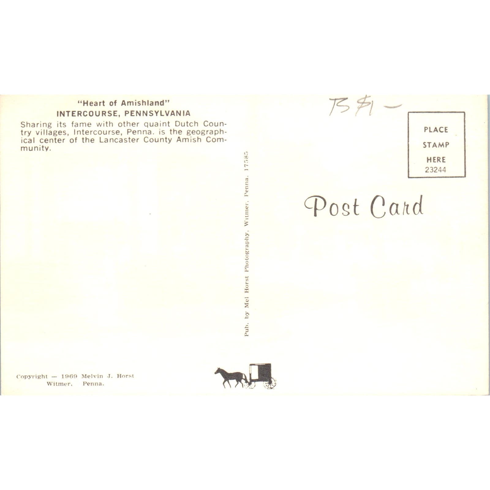 Greetings from Intercourse Pennsylvania Dutch Country Postcard PD7