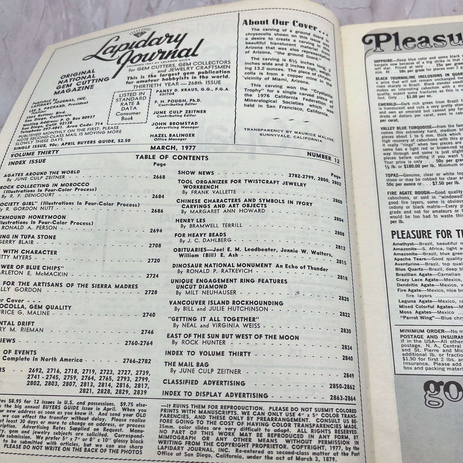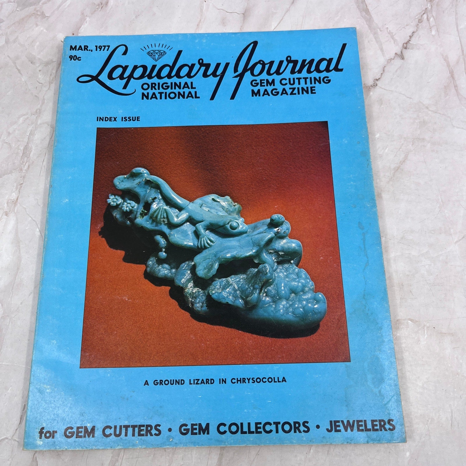 Ground Lizard in Chrysocolla - Lapidary Journal Magazine - Mar 1977 M28