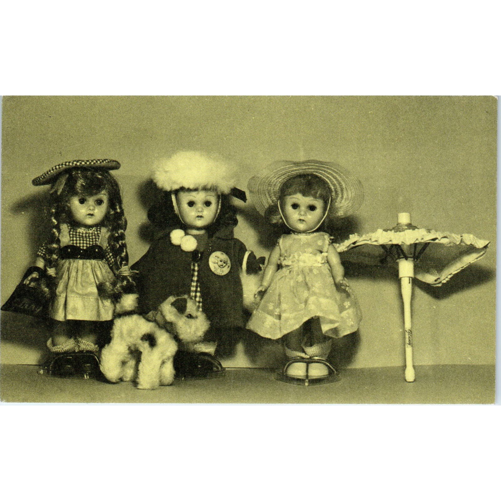 Group of French Bisque Dolls With Dog Green Tint Original Postcard PB10