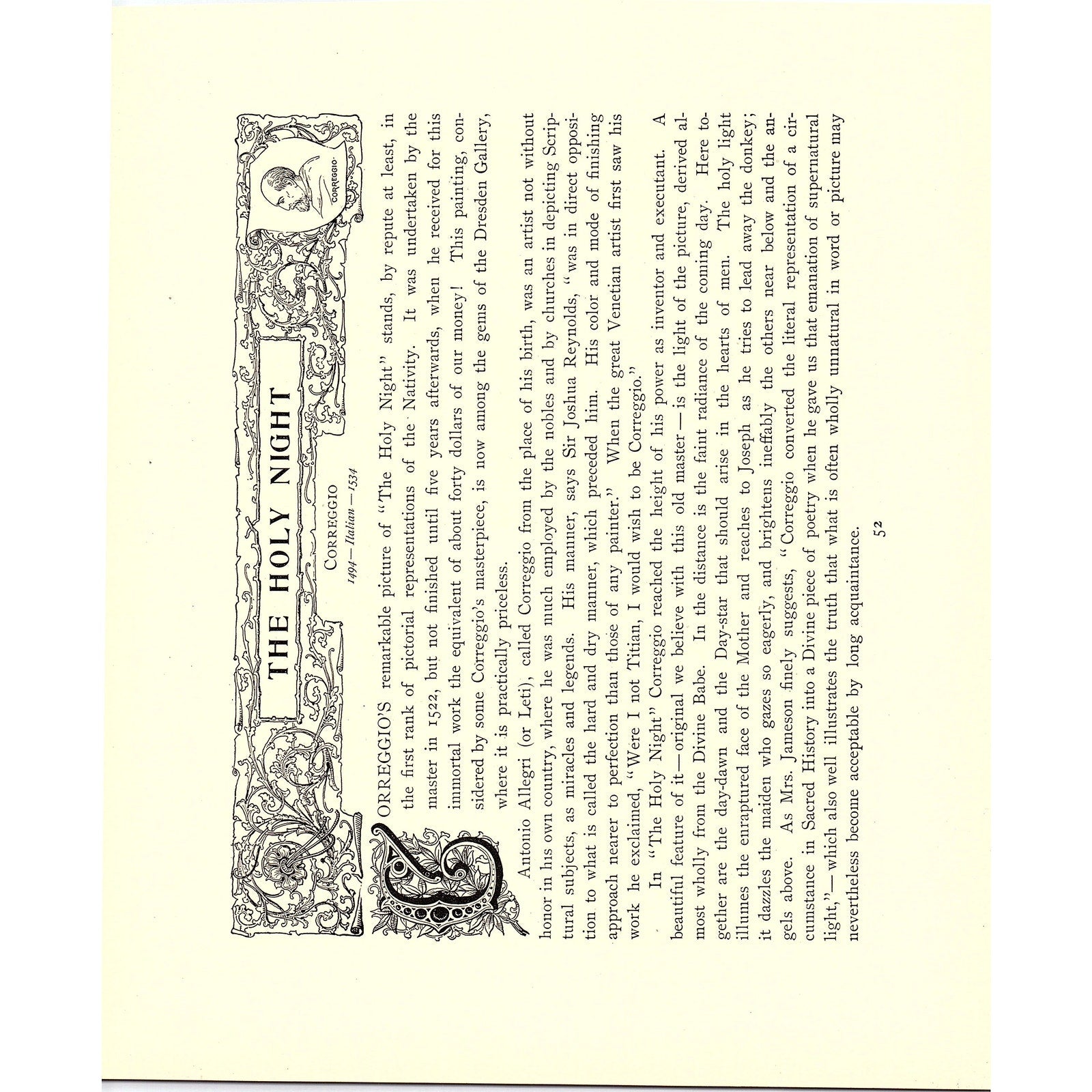 Measures approx 8.5x10.5. Original piece taken from the book - The Crown Jewels of Art by Franklin Edson Belden 1898. Reverse side has description of a different painting due to the layout of the book it was pulled from. There may be some light staining, tears, and/or other signs of wear and tear. See pics for condition.