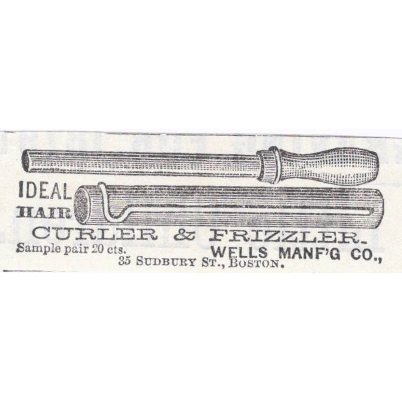 Hair Curler & Frizzler Wells Mfg Co Boston - Victorian Ad 1878 Original TJ7-L2-1