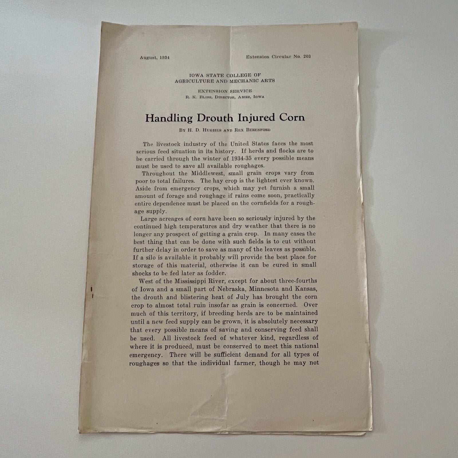 Handling Drouth Injured Corn HD Hughes Rex Beresford 1934 Ames Iowa Farm Bulletin Booklet TK2-XB4