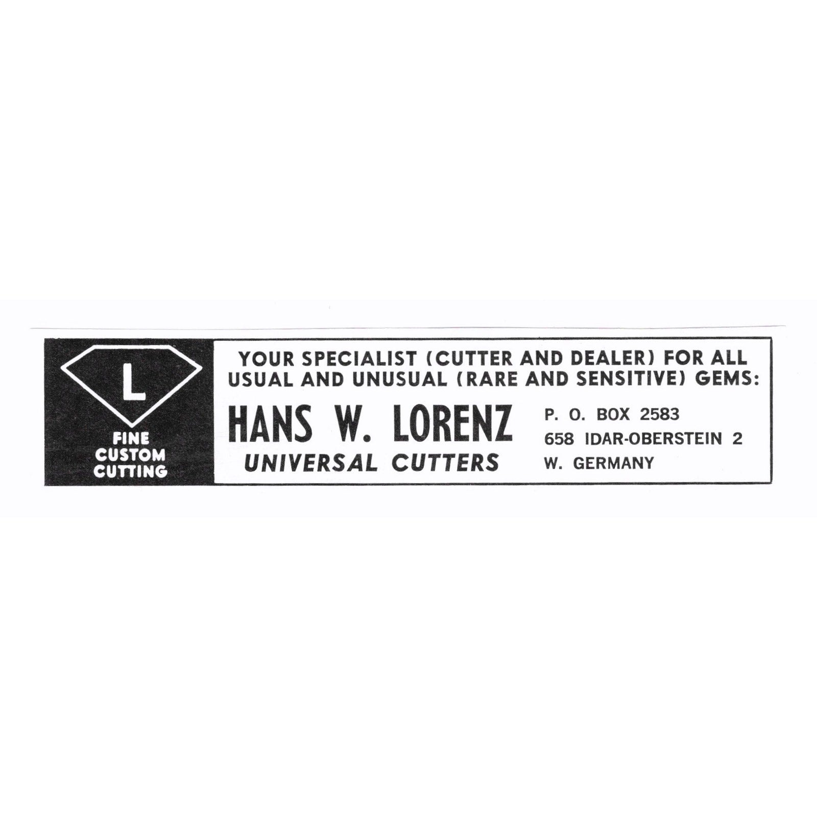 Hans W. Lorenz Fine Custom Cutting Idar-Oberstein West Germany 1972 Ad AF8-M4