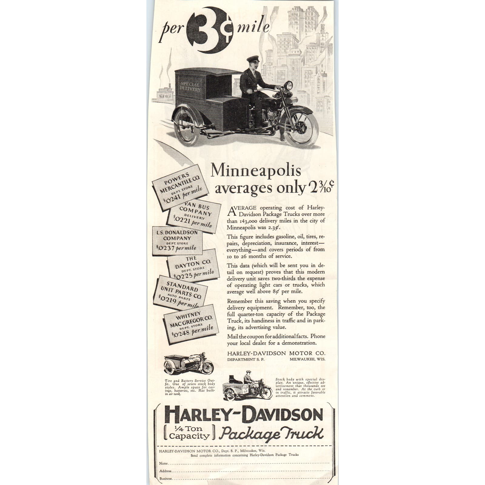 Harley-Davidson 1/4 Capacity Package Truck 1928 Original Advertisement FL6-8