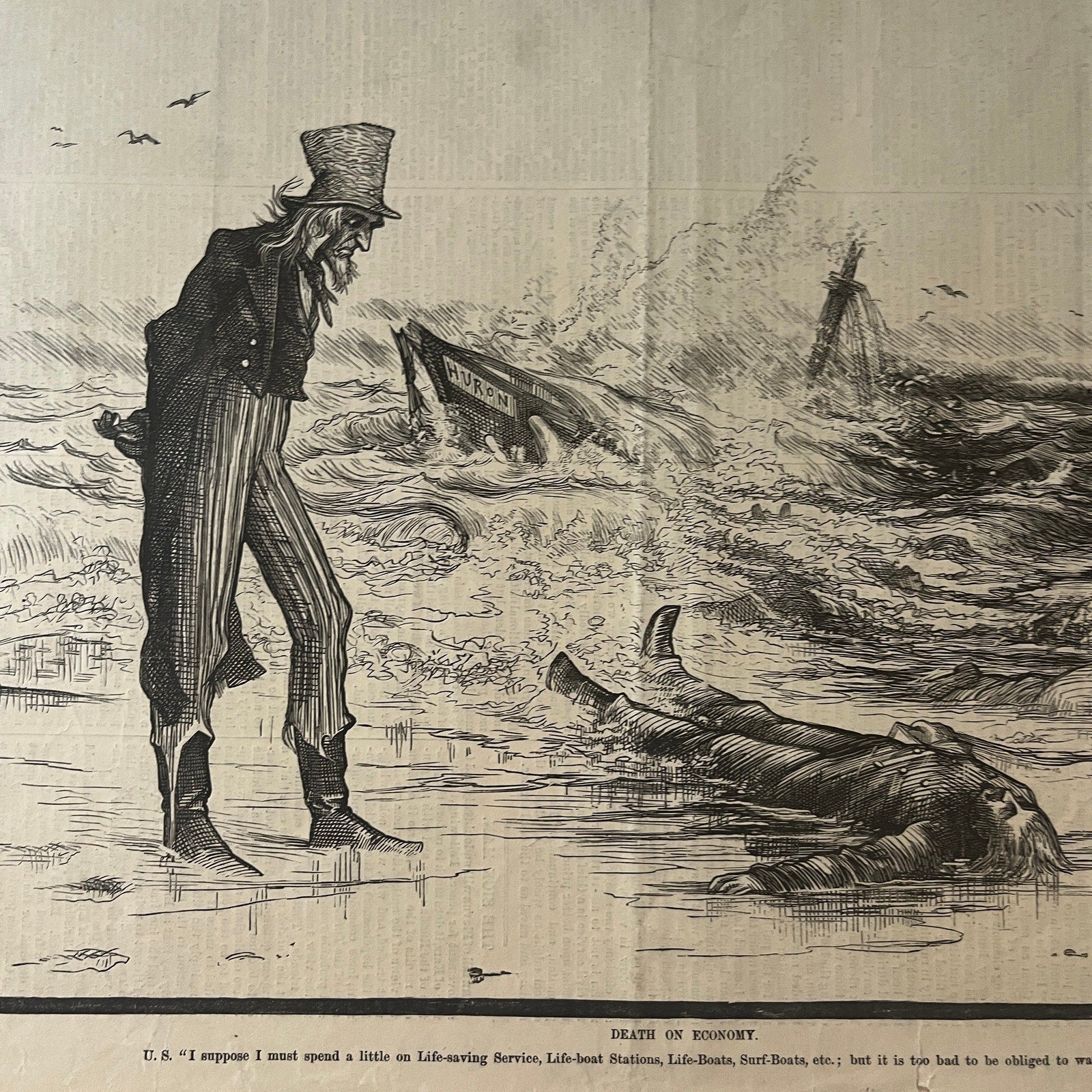 Harper's Weekly Death on Economy Uncle Sam Satire Engraving 1877 Dec 29 V1-7