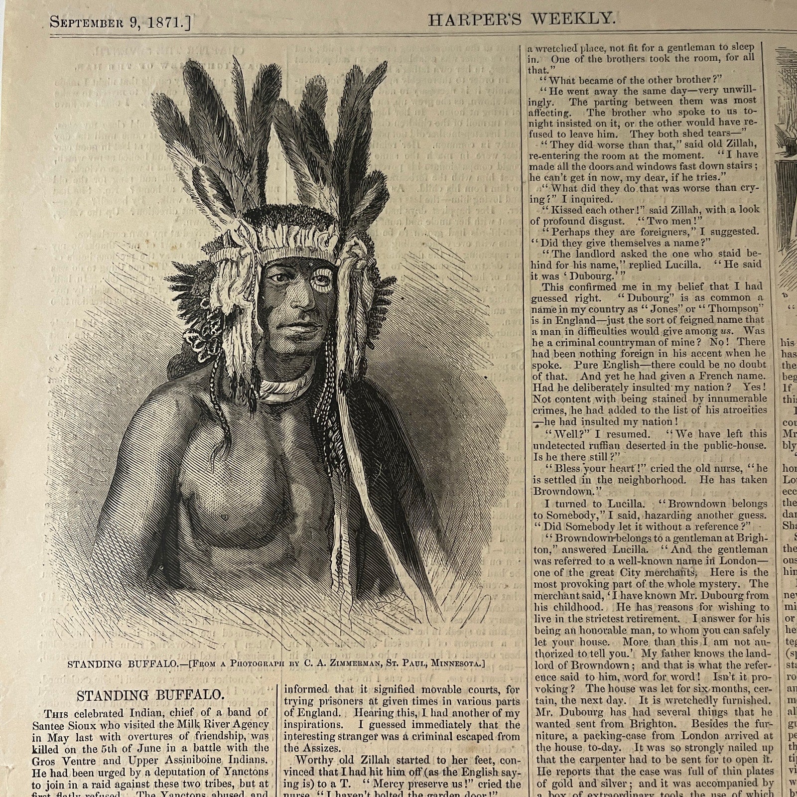 Harper's Weekly Standing Buffalo Santee Sioux Chief Engraving 1871 Sep 9 V1-7