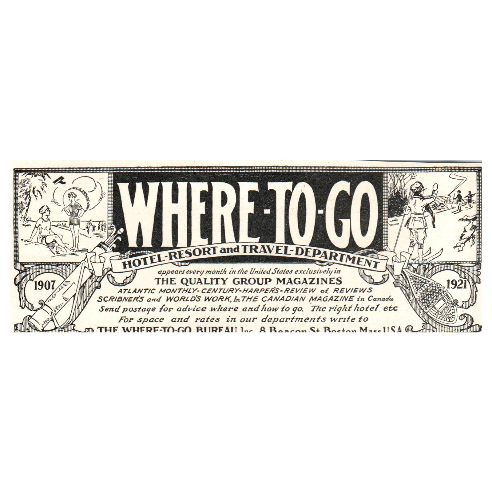 Harper's Where To Go Hotel, Resort & Travel Department - 1921 Original Ad TJ7-S