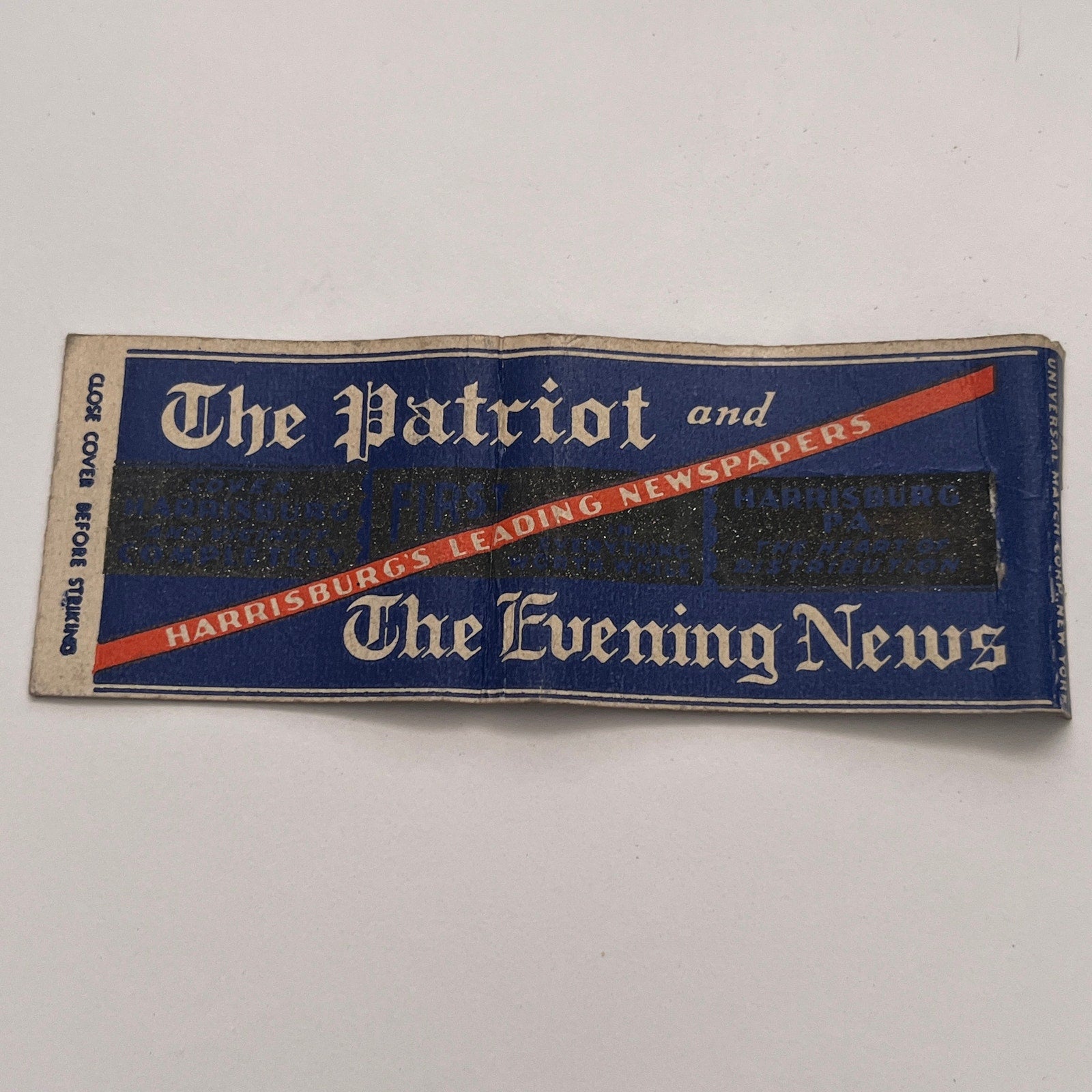 Harrisburg Patriot & Evening News Newspapers Vintage Matchbook Cover TB8-MB-4