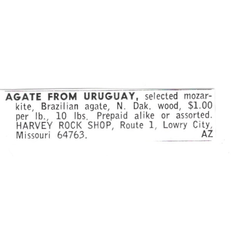 Harvey Rock Shop Uruguay Agate Lowry City Missouri 1972 Ad AF8-S15