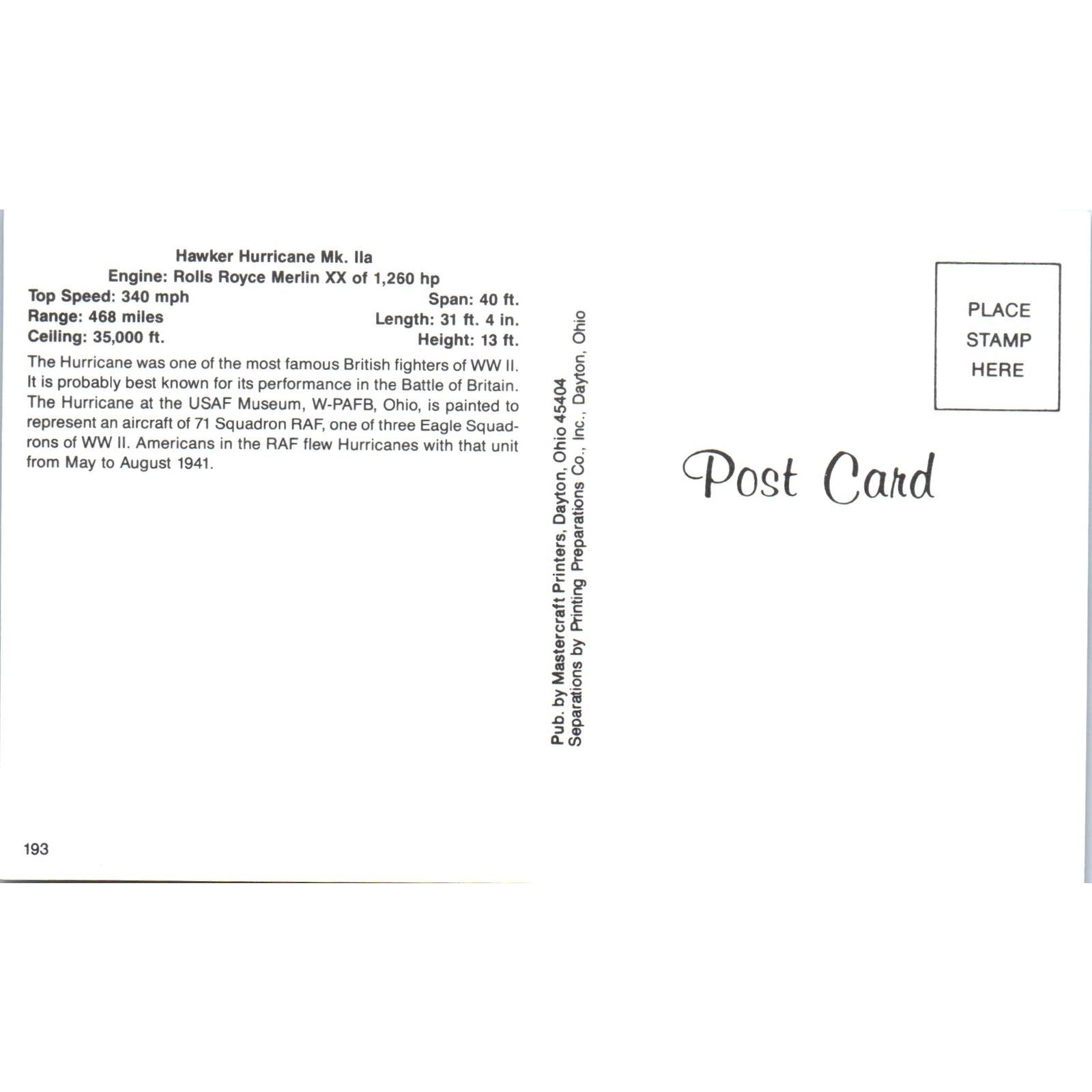 Hawker Hurricane Mk. IIa Vintage Postcard PC19