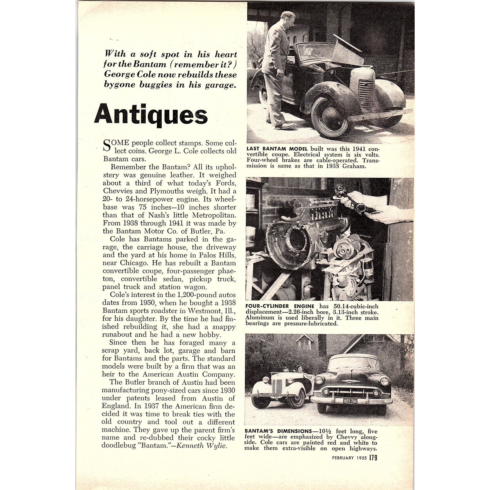 He Collects Young Antiques George L. Cole Bantam Cars 2-Page 1955 Article AG1-4