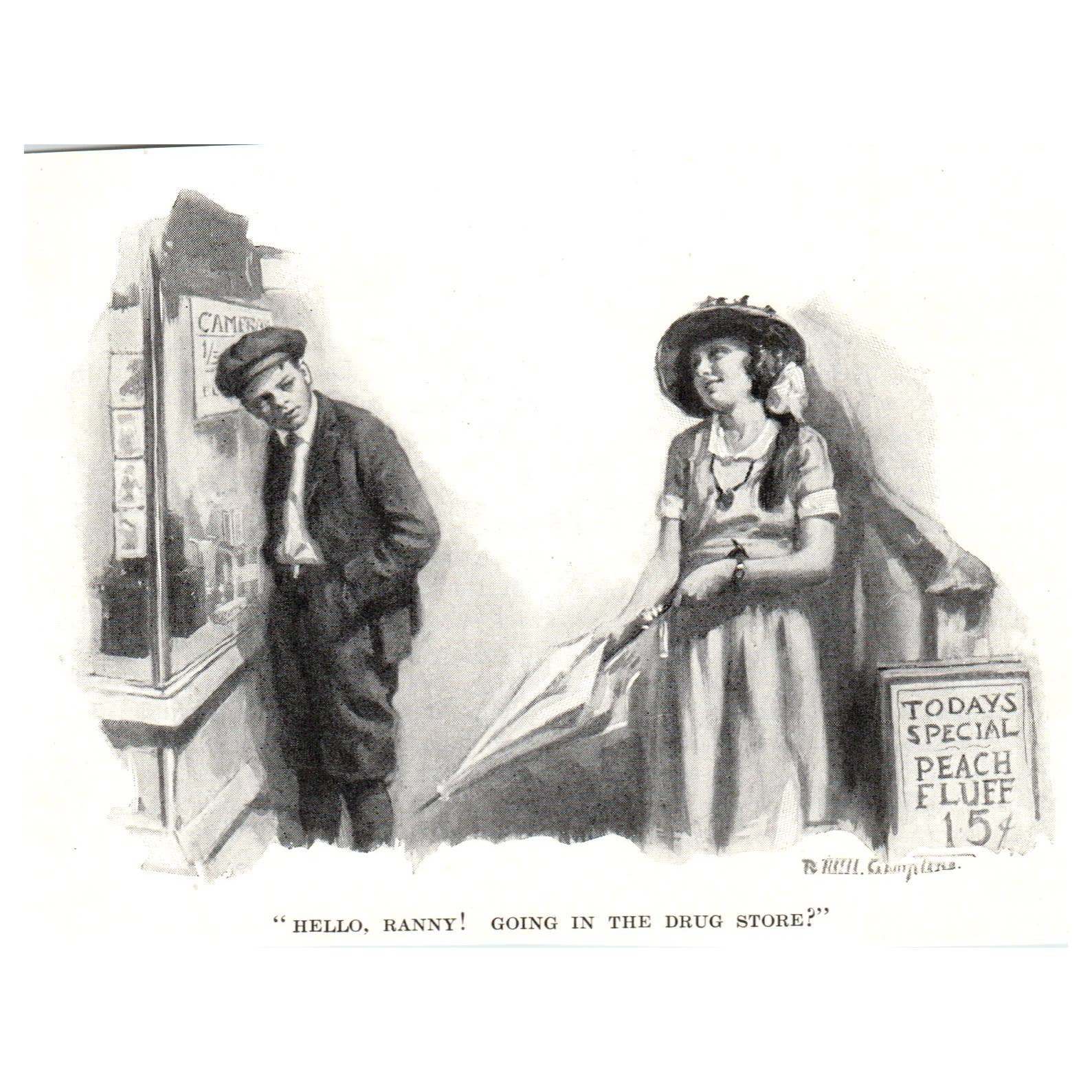 Hello Ranny! Going in the Drug Store? - 1921 Original Illustration TJ7-S