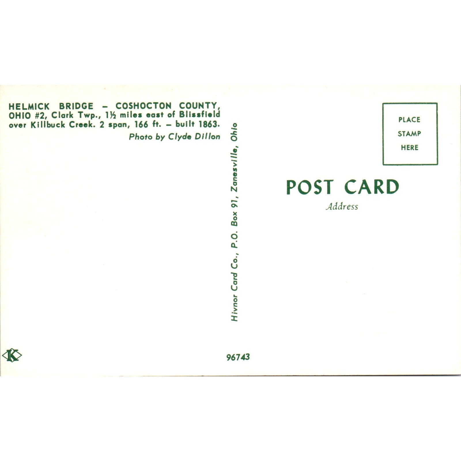 Helmick Bridge Coshocton County Ohio #2 Covered Bridge Postcard PB12