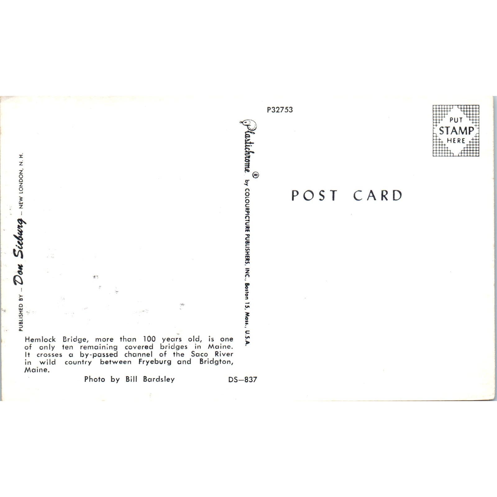 Hemlock Bridge Saco River Fryeburg Bridgton ME Vintage Covered Bridge Postcard PD3