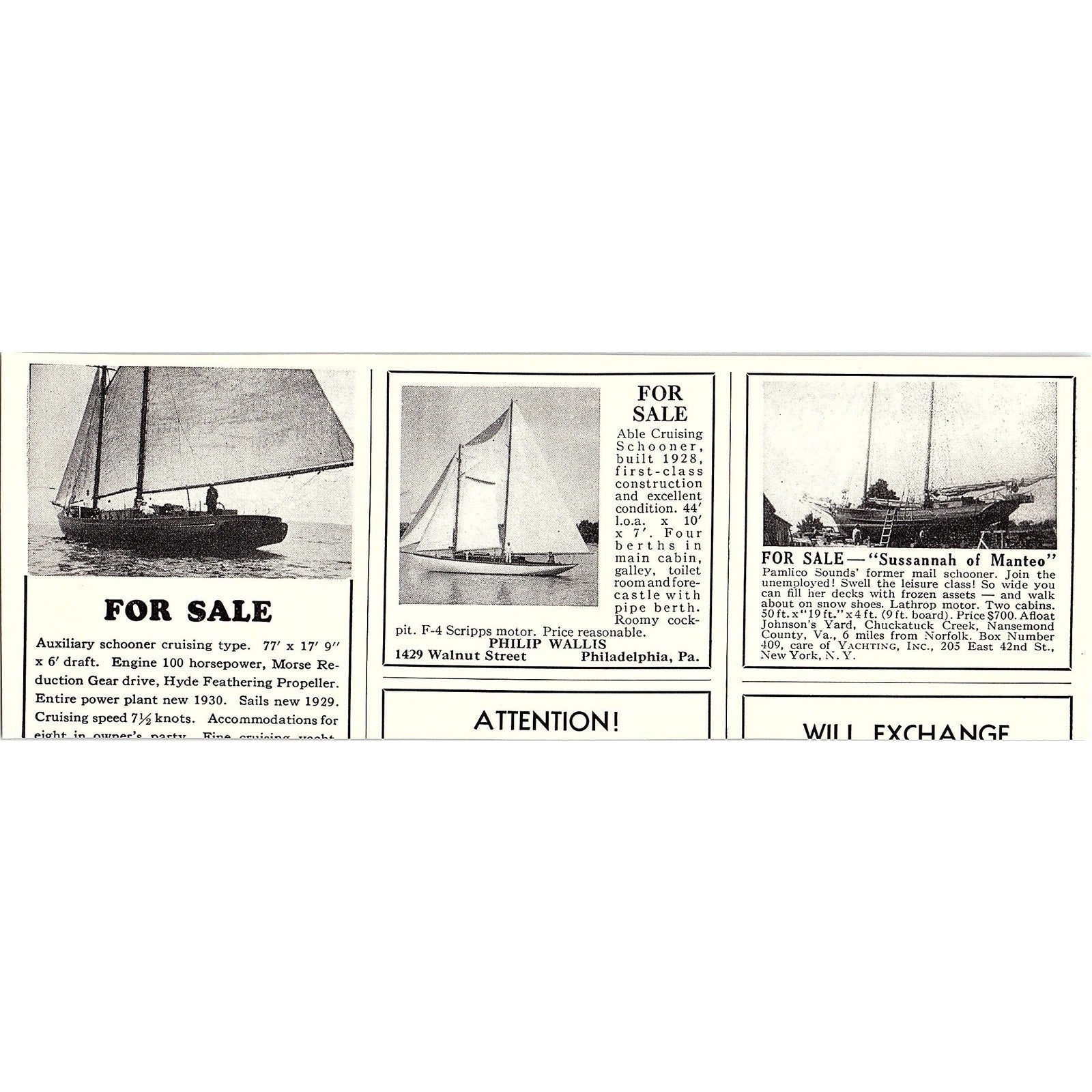 Approx 3x6.5". Original piece taken from 1932 Yachting Magazine. May have blemishes you would expect from something this age. See pics for condition.