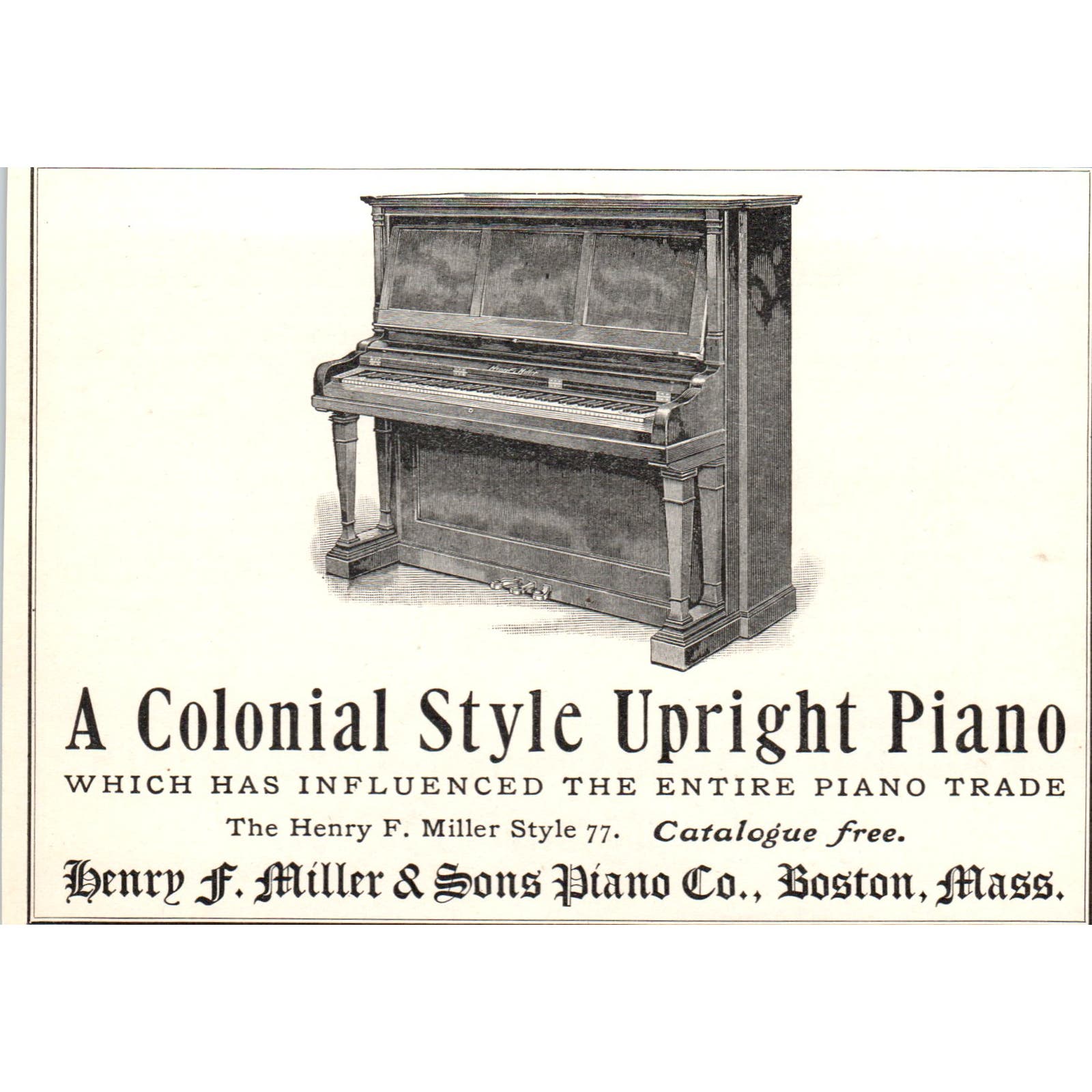 Henry F. Miller & Sons Colonial Style Piano Boston c1905 Victorian Ad AE9-MA3