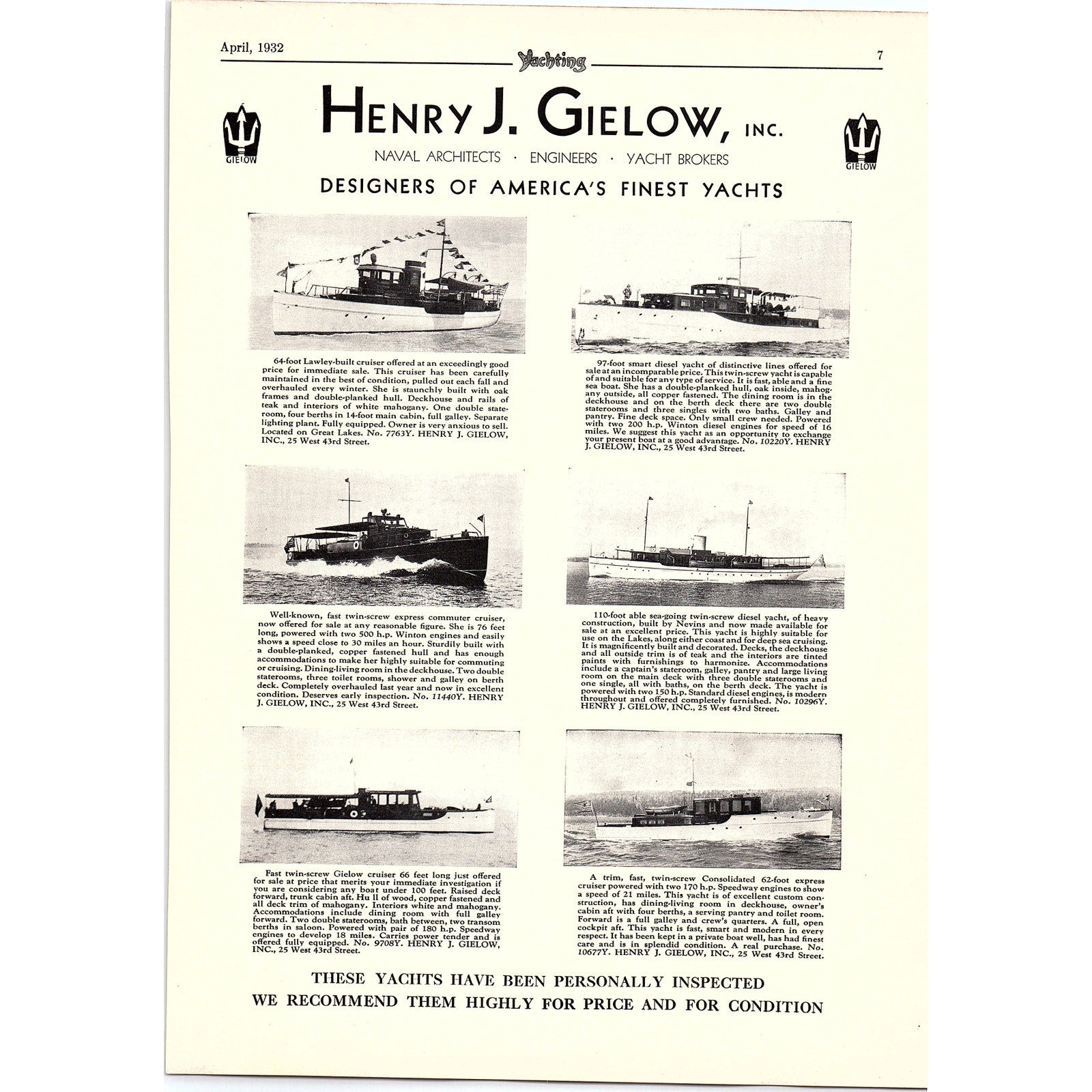 Henry J. Gielow Inc Designers of America's Finest Yachts 1932 Ad D22