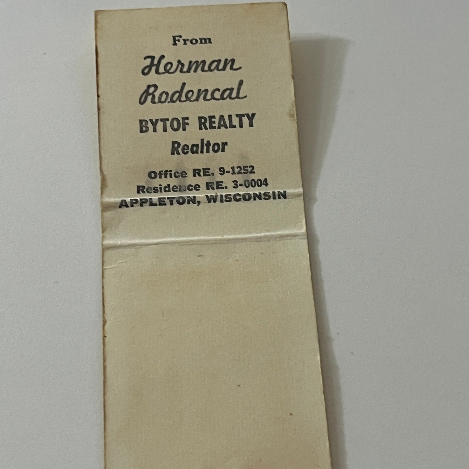 Herman Rodencal Bytof Realty Appleton WI Vintage Matchbook Cover TB6-MB2-5