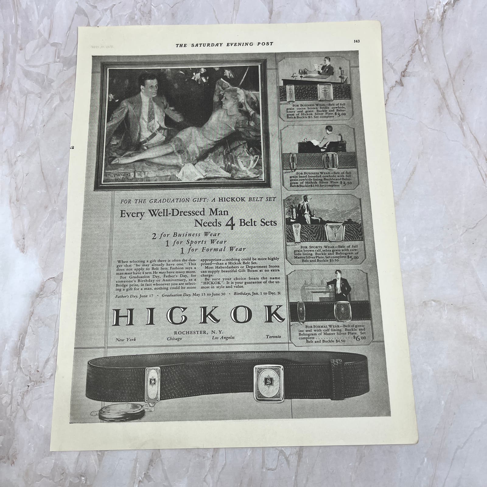 Hickok Men's Belt Set Rochester NY 1928 Original Magazine Advertisement FL6-8