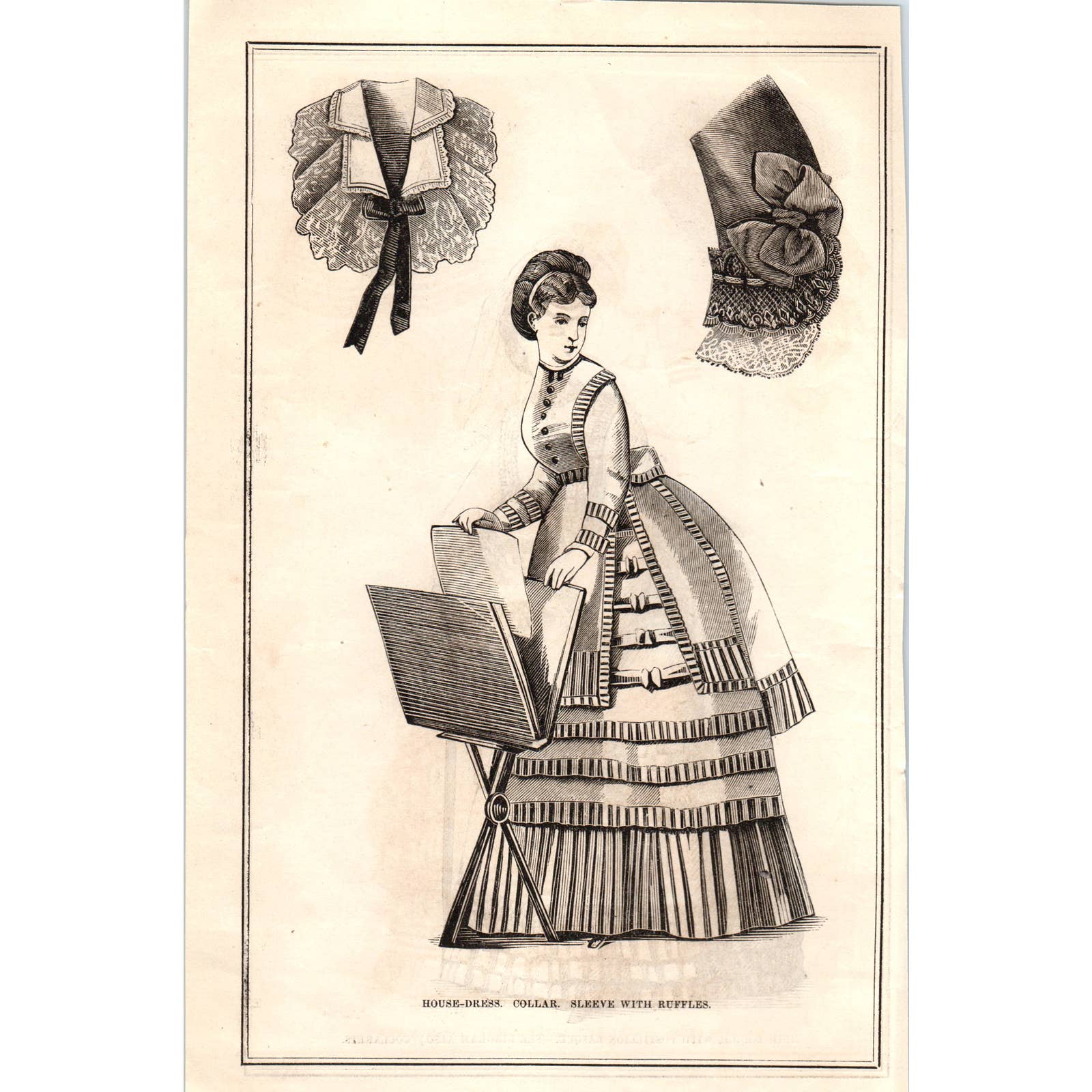 This measures roughly 5x8. Pulled from a 1878 Issue of Peterson's Magazine. See pics for condition. Measurements are approximate.