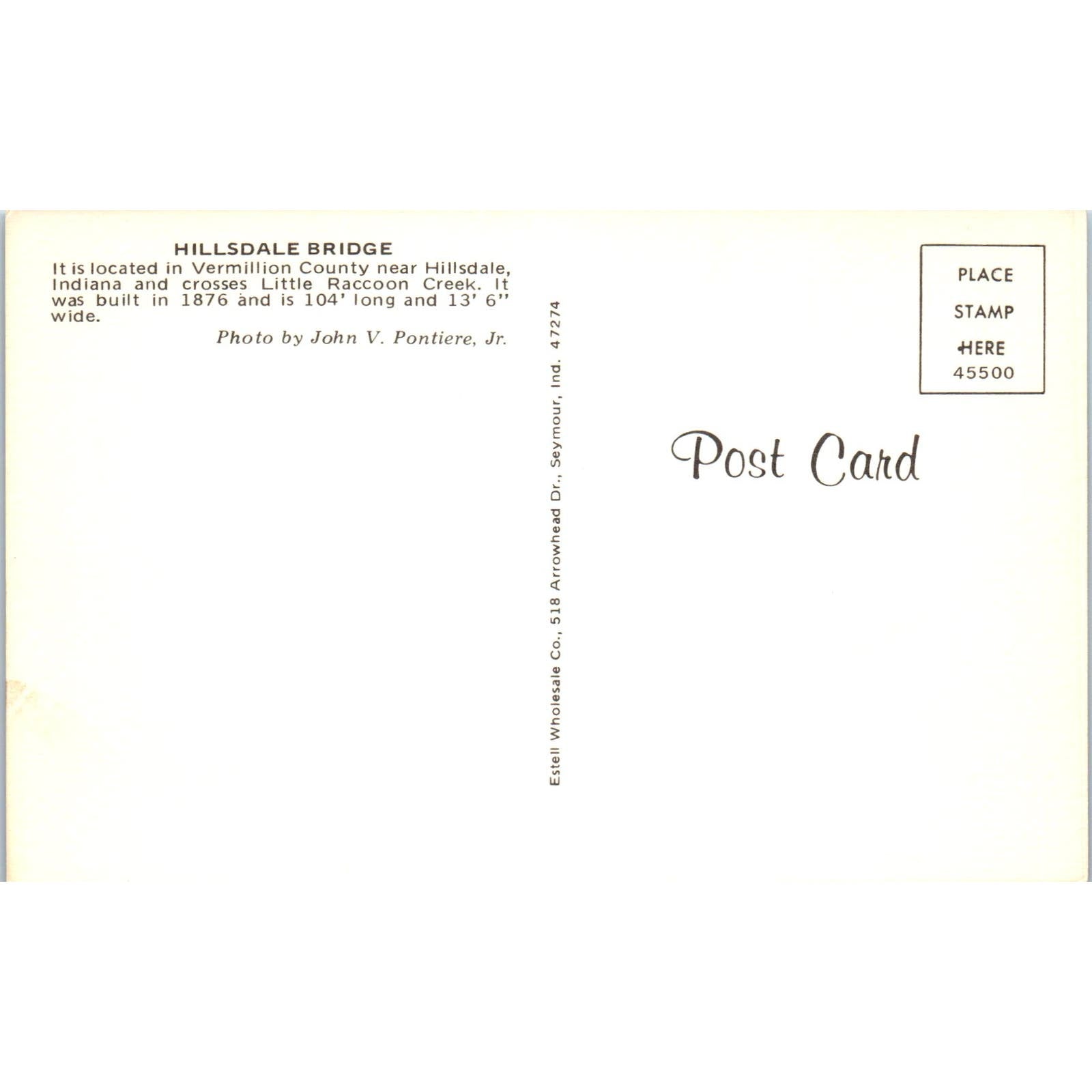 Hillsdale Bridge Vermillion Little Racoon Creek IN Covered Bridge Postcard PC7