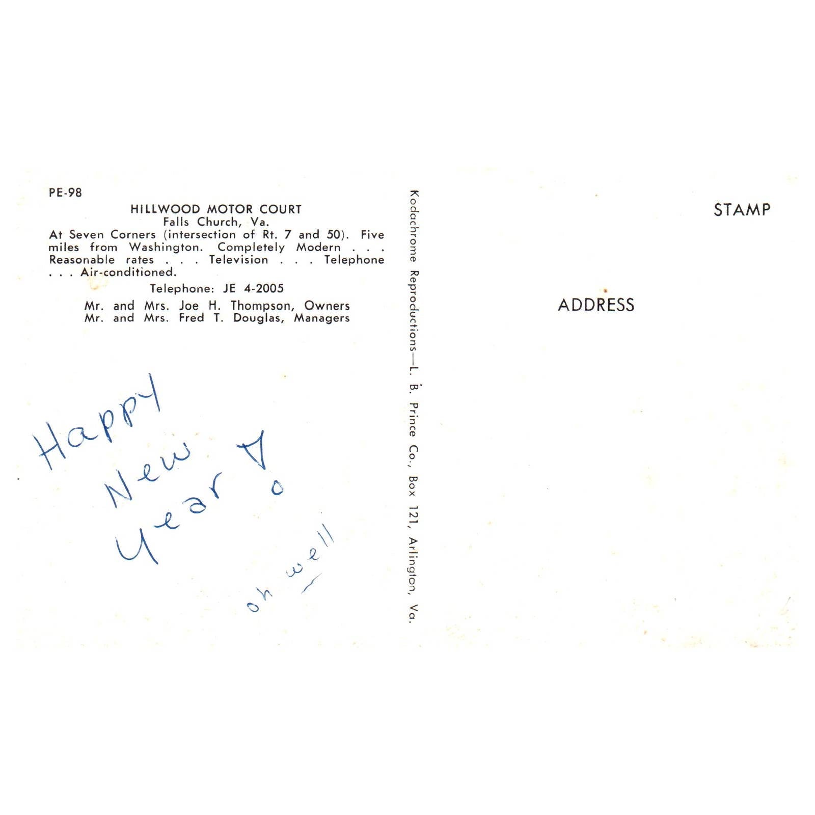 Hillwood Motor Court Falls Church Virginia Joe H. Thompson Fred T. Douglas - Postcard TJ8-1