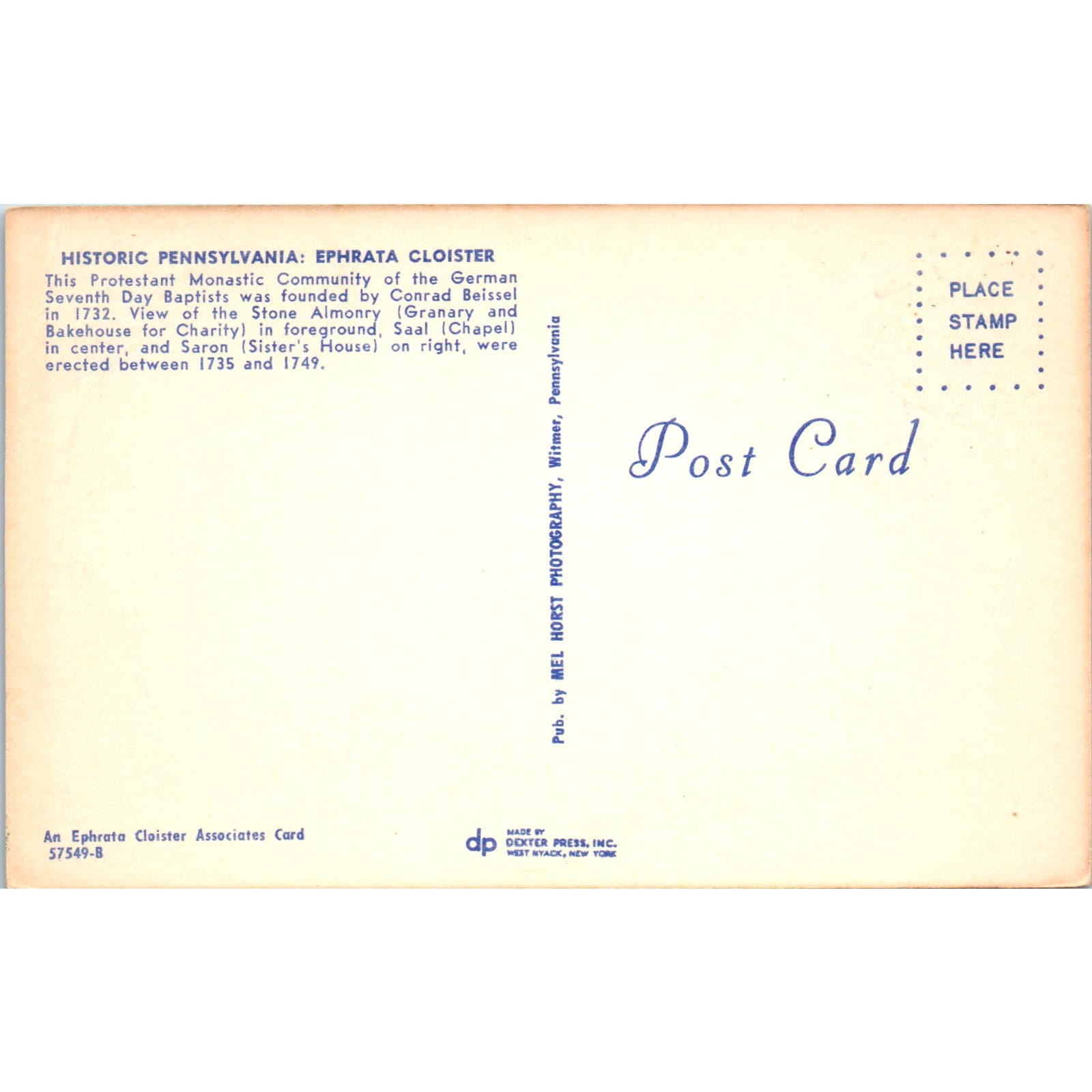 Historic Pennsylvania Ephrata Cloister Vintage Postcard PD4