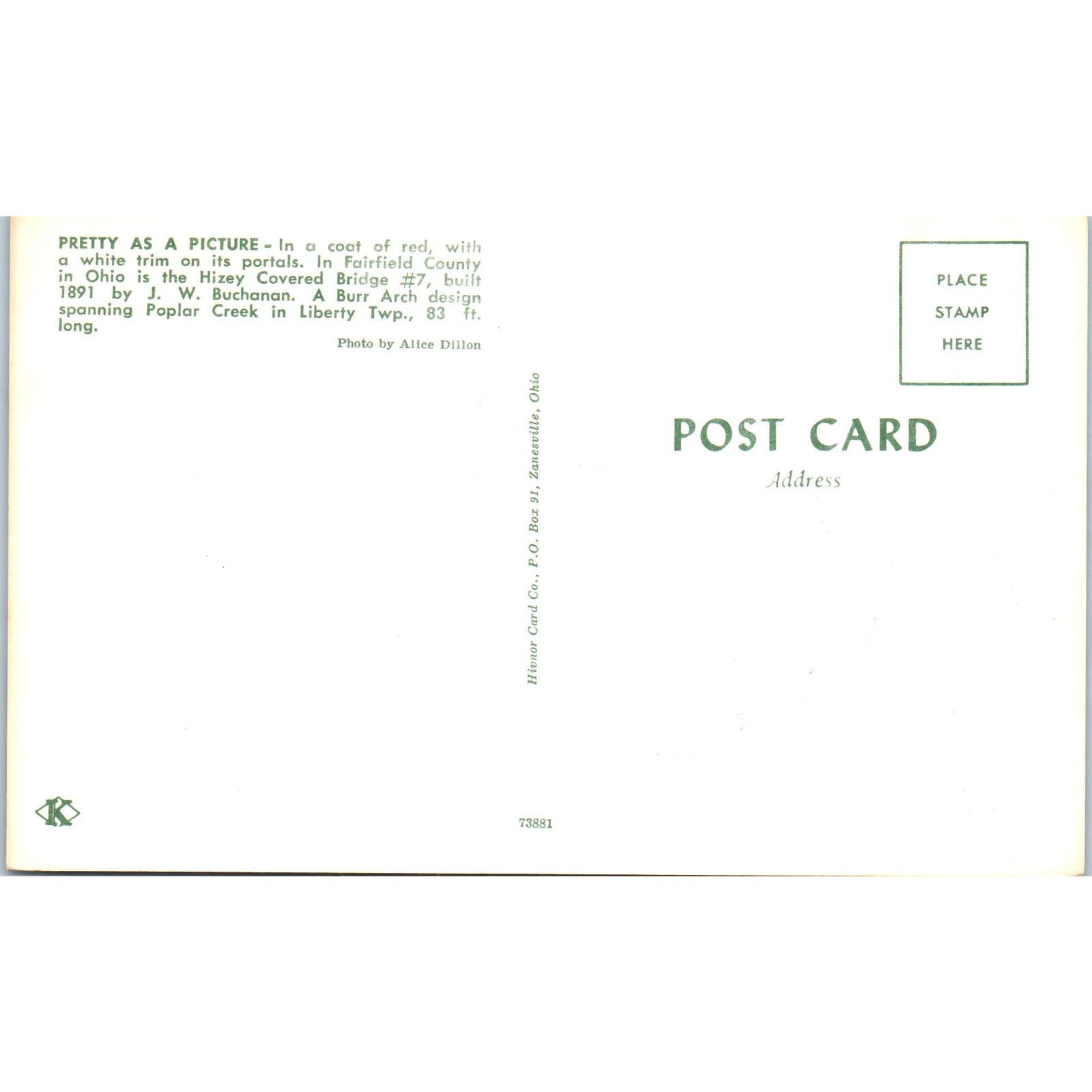 Hizey 7 Fairfield County OH J.W. Buchanan Vintage Covered Bridge Postcard PC11