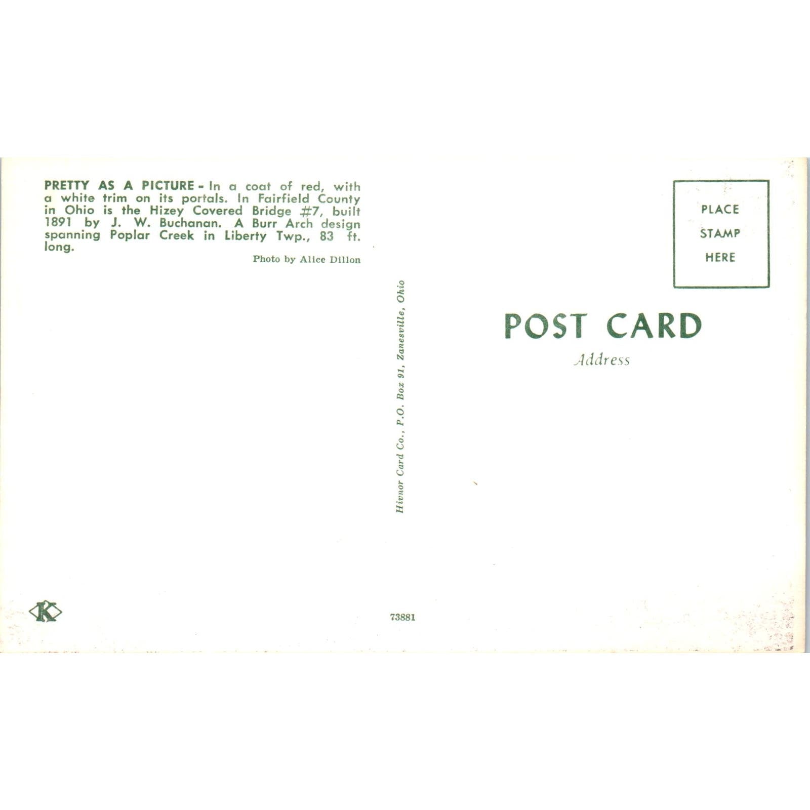 Hizey Covered Bridge 7 Fairfield County OH Vintage Covered Bridge Postcard PC16