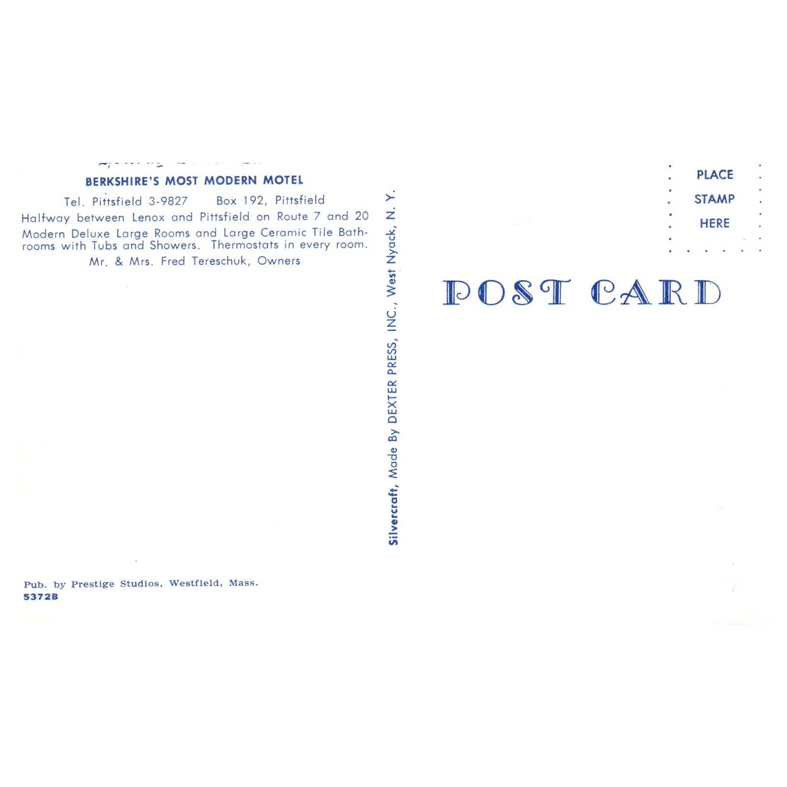 Holiday Deluxe Hotel Berkshire, Pittsfield MA Fred Tereshuck - Postcard TJ8-2