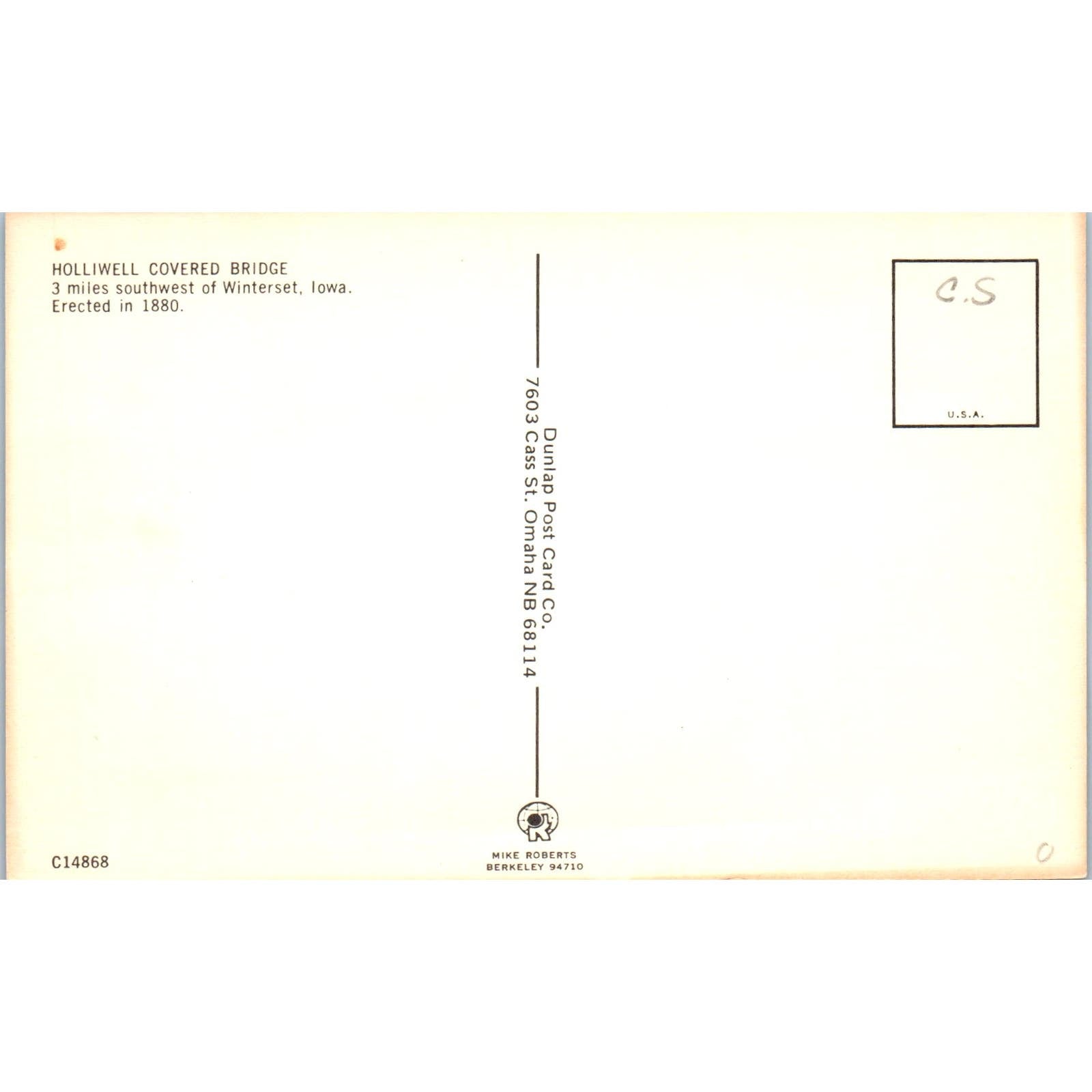 Holliwell Covered Bridge Winterset IA Vintage Covered Bridge Postcard PC14
