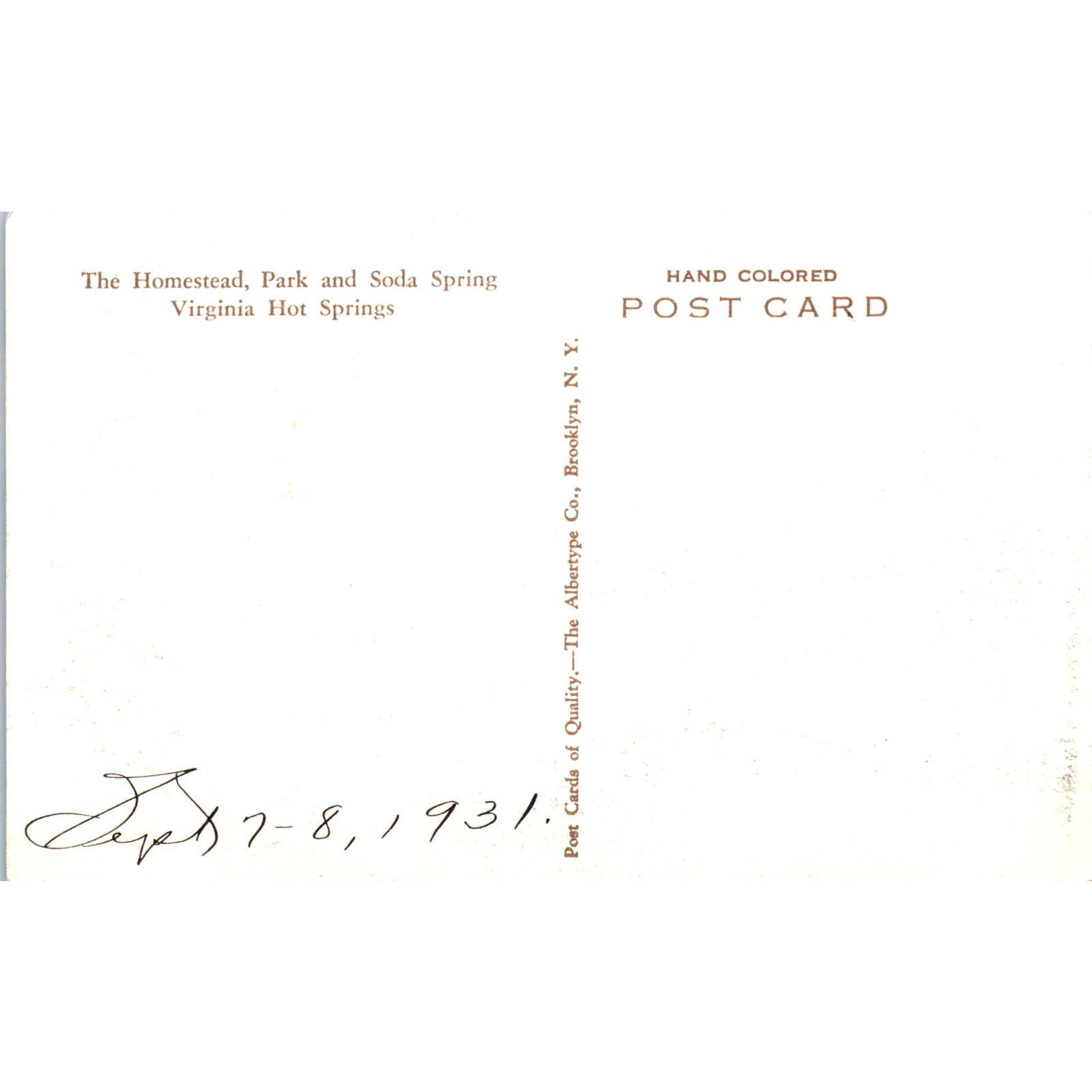 Homestead, Park and Soda Spring Virginia Hot Springs Original Postcard TK1-29
