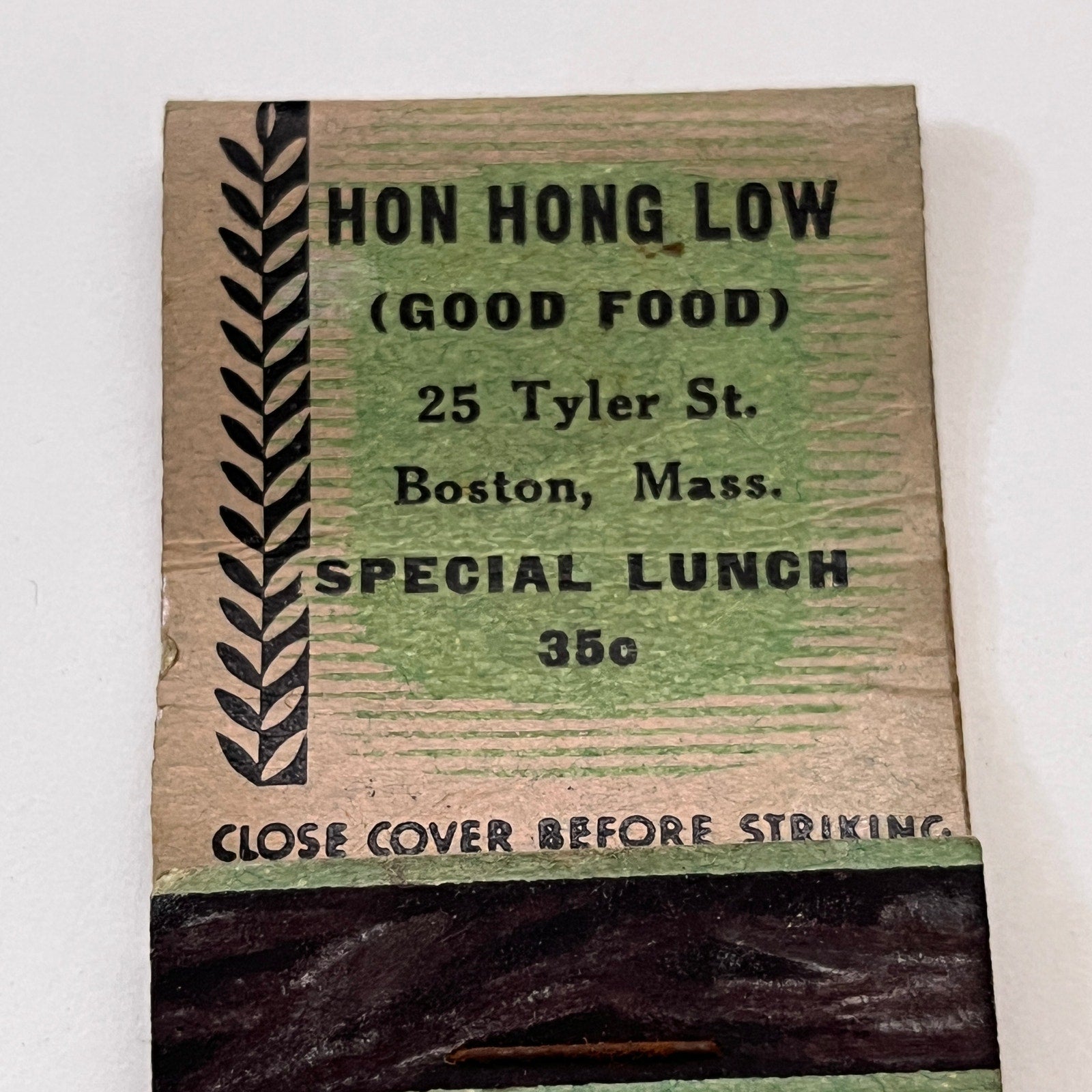 Hon Hong Low Chinese Food 25 Tyler St Boston MA Vintage Matchbook Cover TB8-MB3-1
