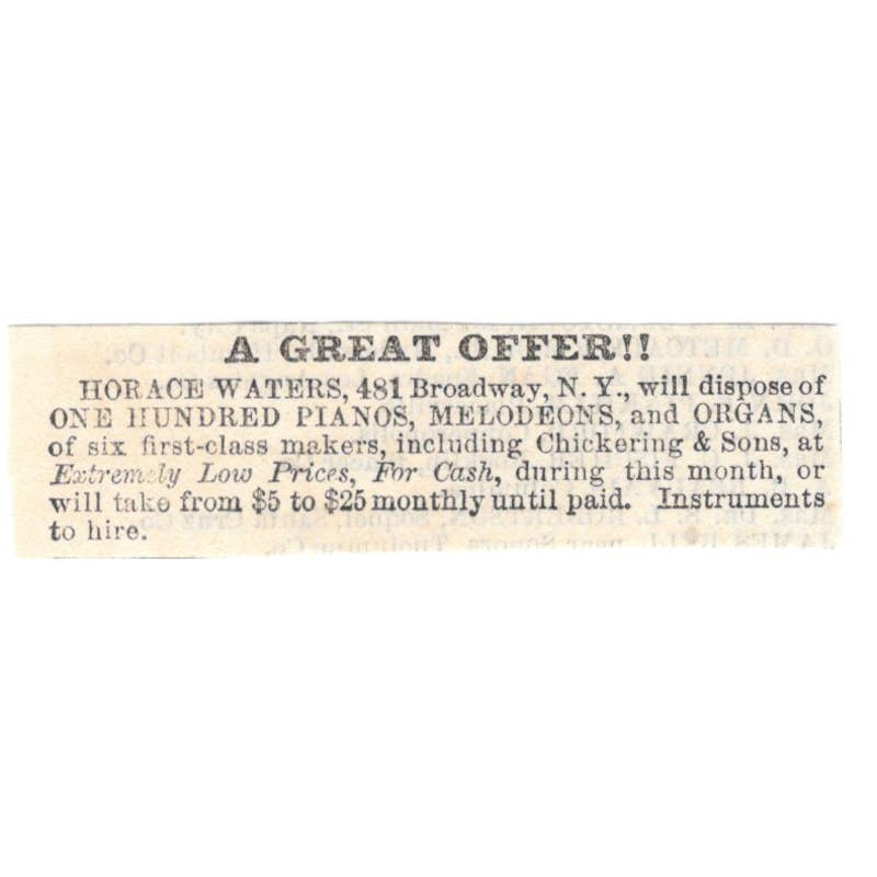 Horace and Waters Pianos & Organs - Ad 1878 Original TJ7-L2-3