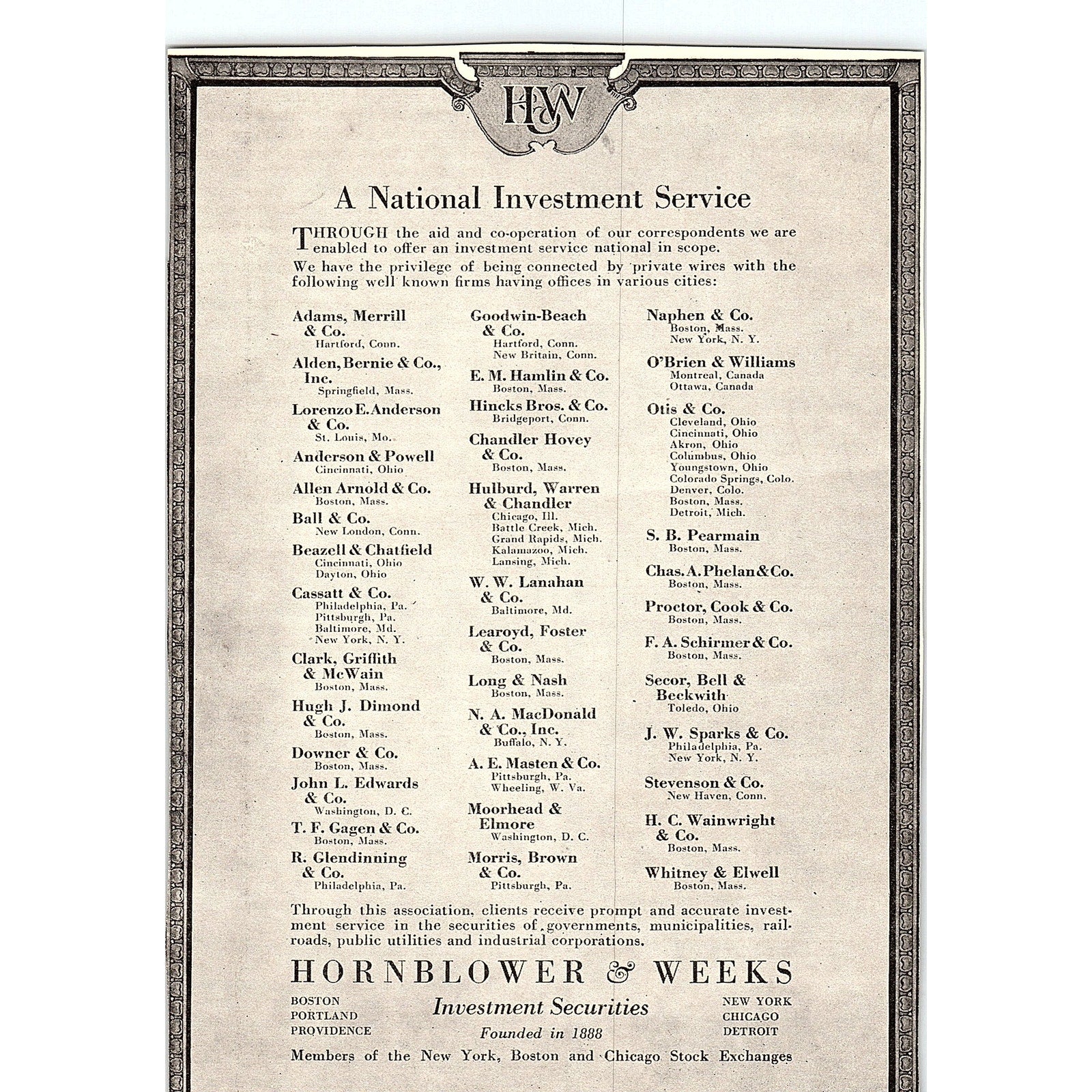 Hornblower & Weeks Investment Securities c1920 Ad AF8-9