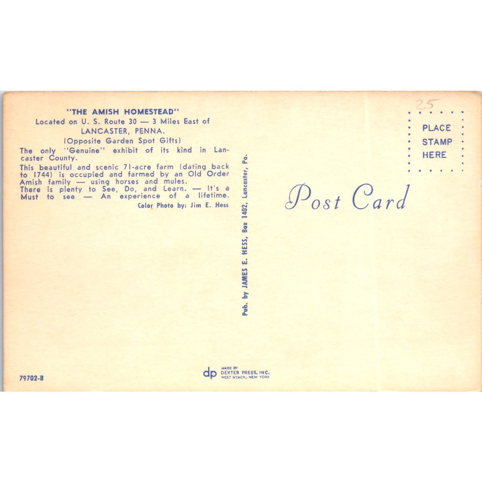 Horse & Buggy Amish Homestead Lancaster PA Dutch Country Vintage Postcard PD5