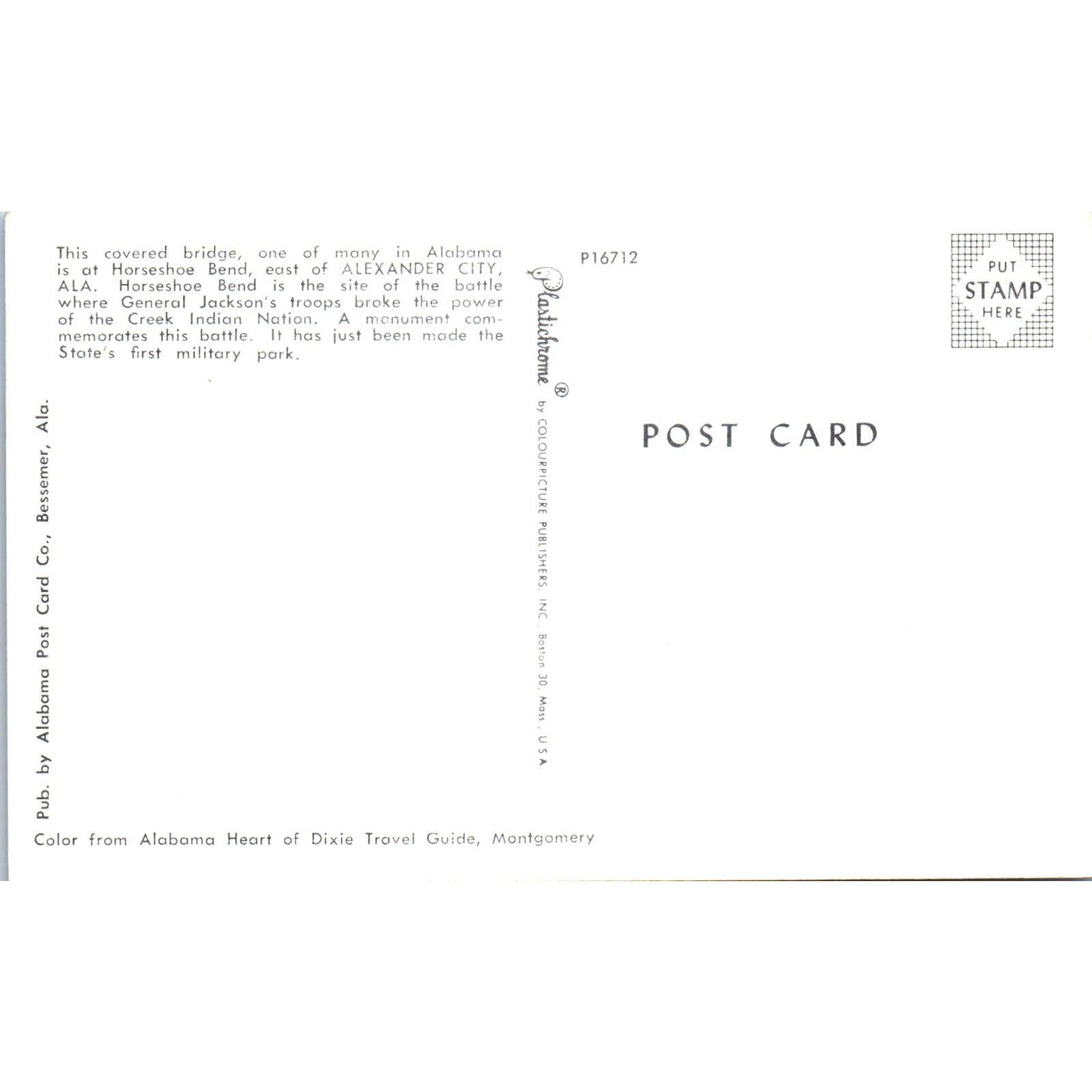 Horseshoe Bend Alexander City Alabama Covered Bridge Postcard PC2