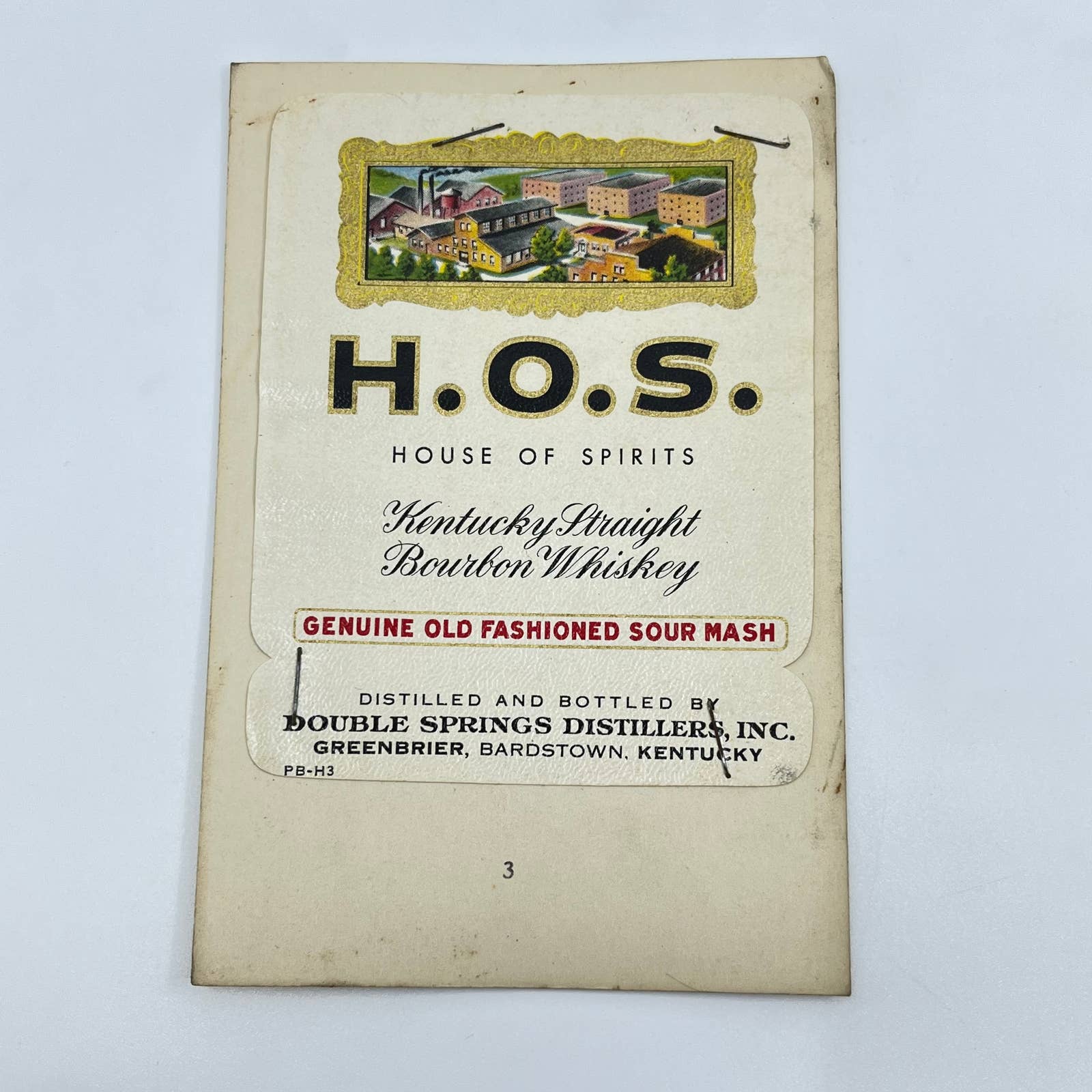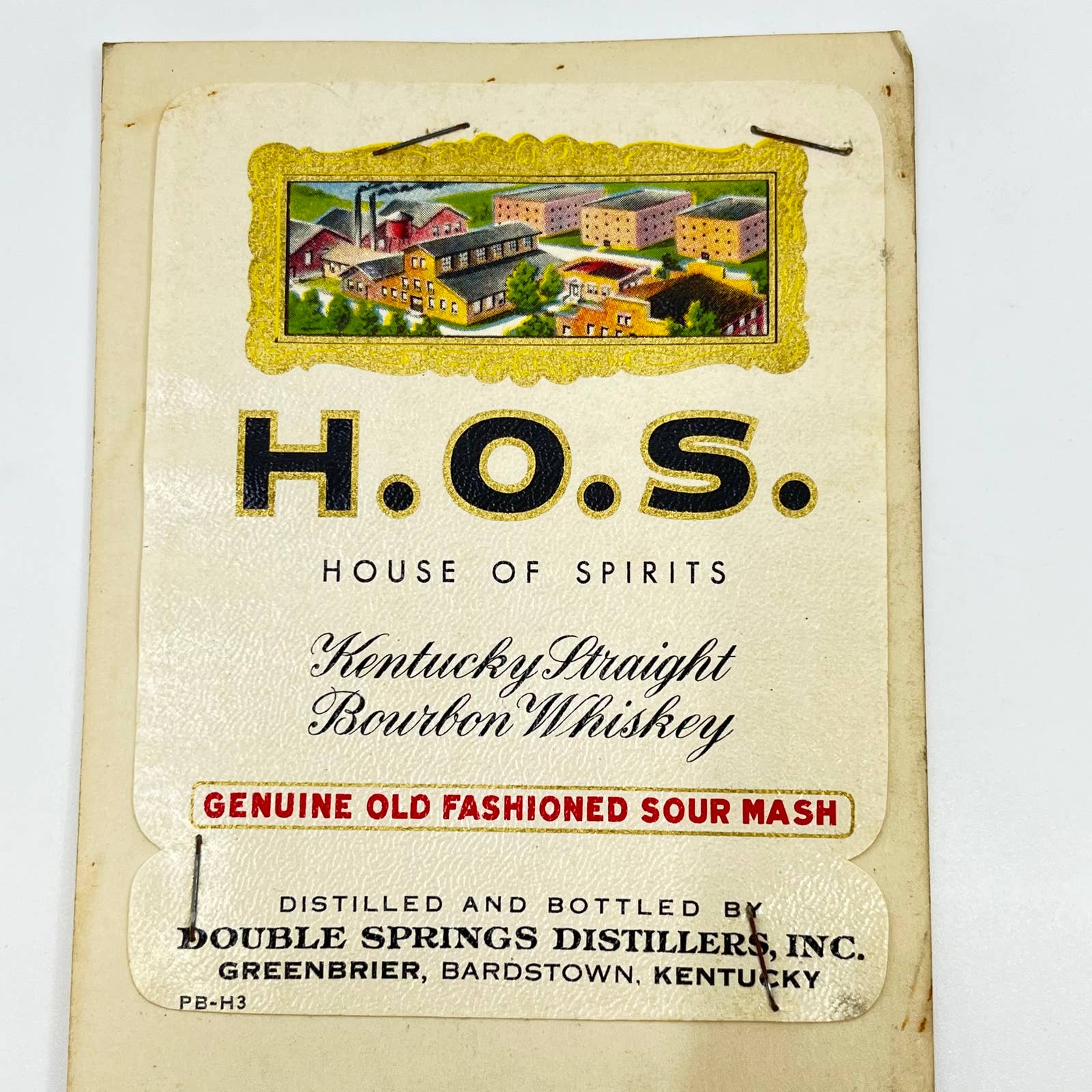 HOS House of Spirits Bourbon Whiskey Label Double Springs Greenbrier KY