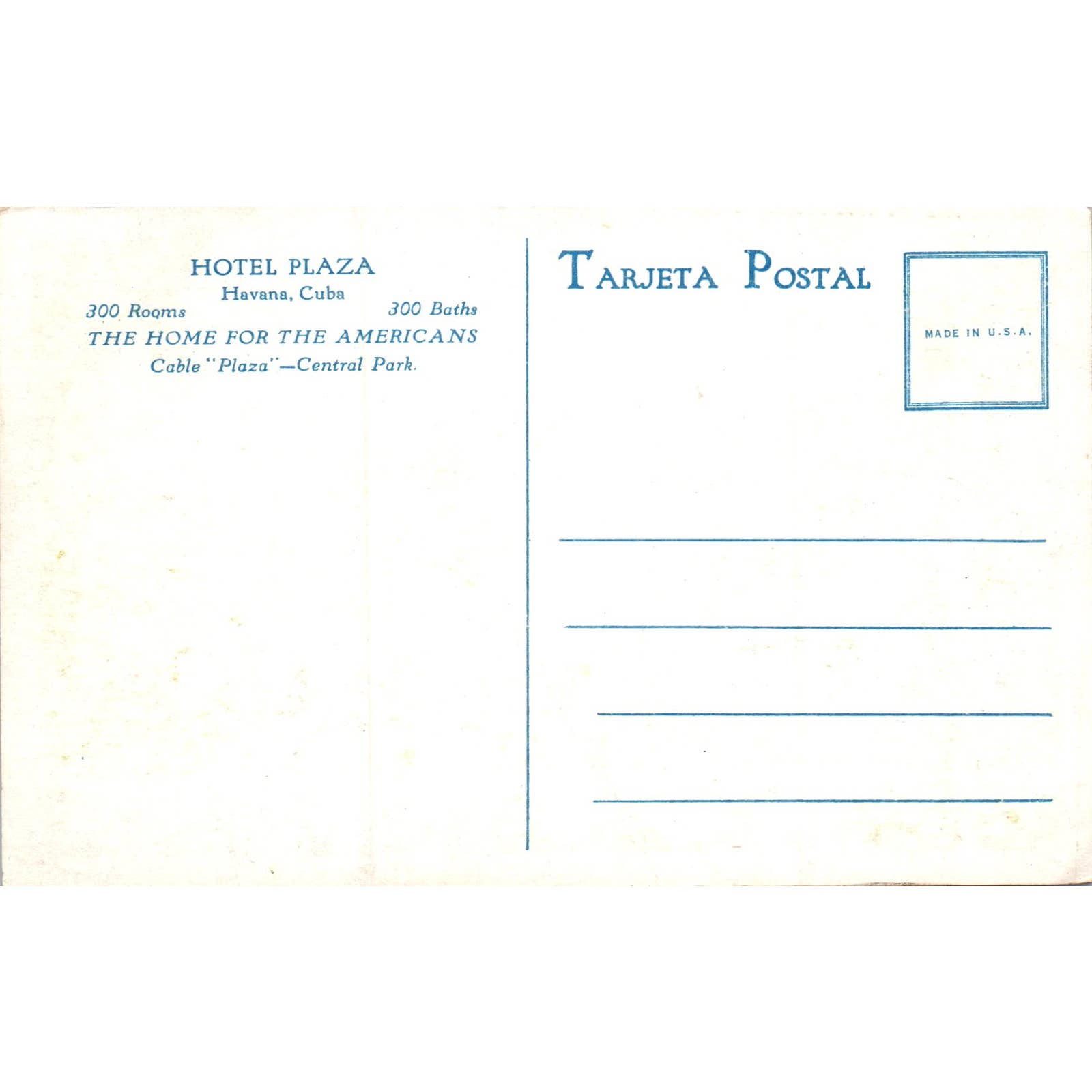 Hotel Plaza Central Park Havana Cuba Original Postcard TK1-P16