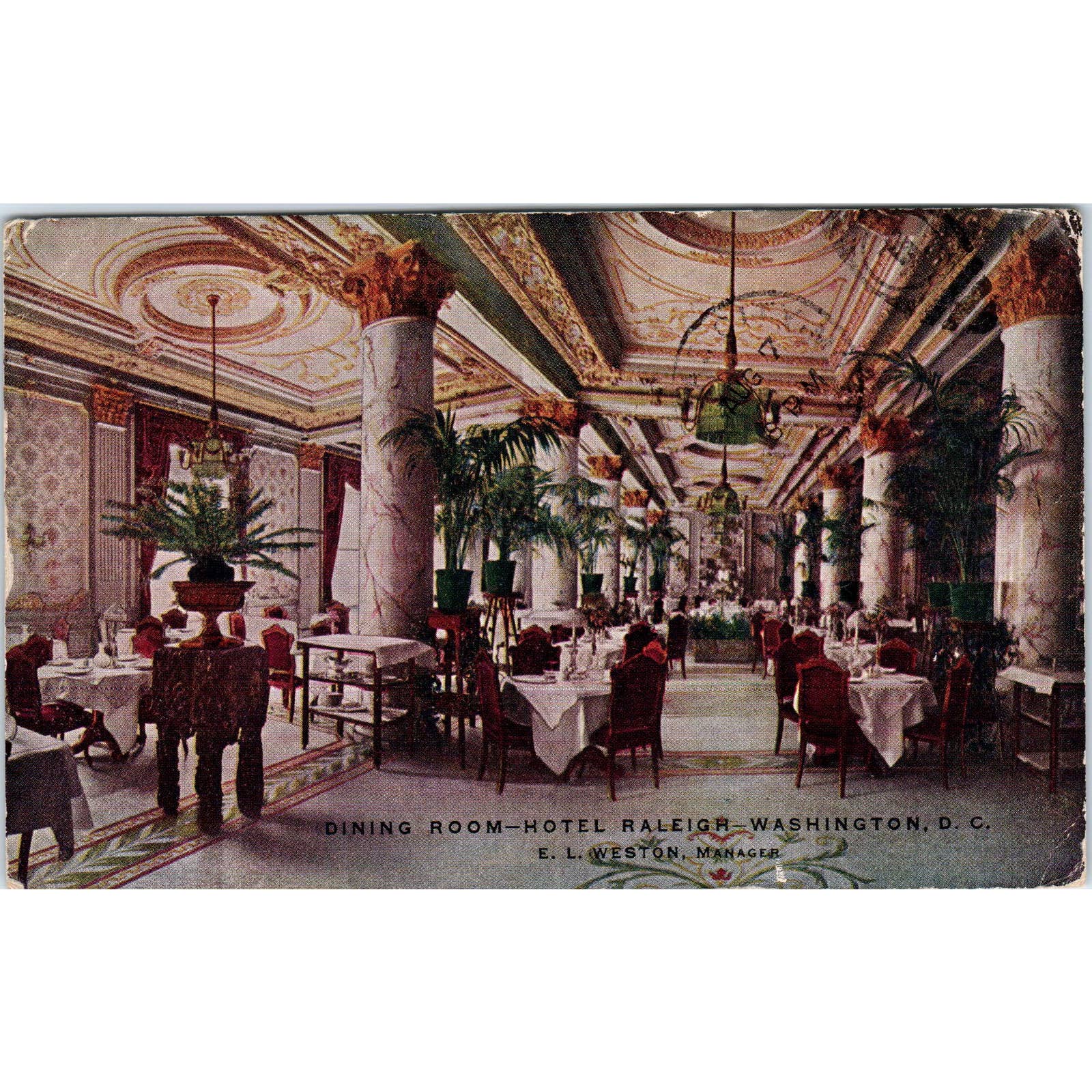 Hotel Raleigh Dining Room 1918 Washington D.C. Original Postcard TK1-P2