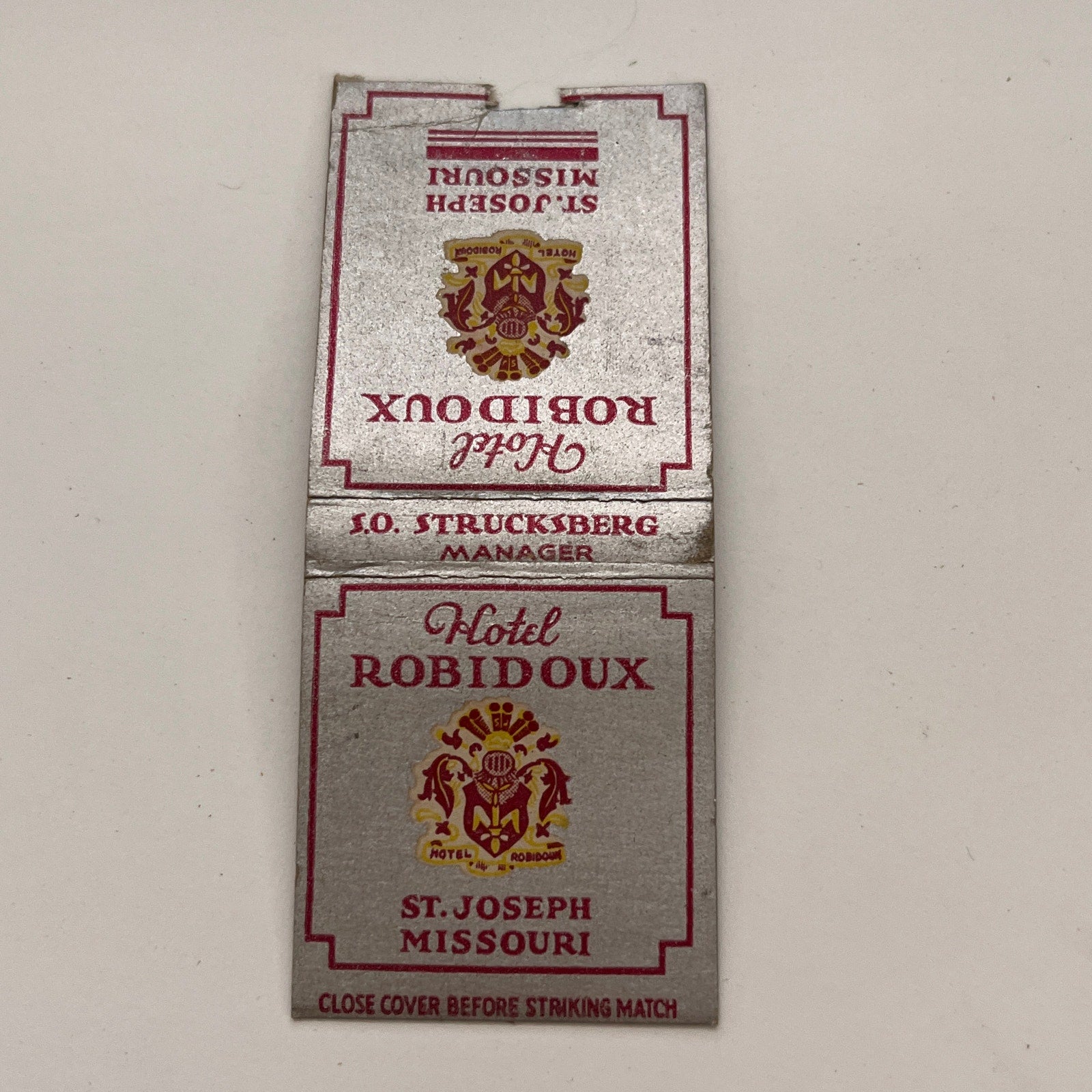 Hotel Robidoux St. Joseph Missouri Vintage Matchbook TB6-MB2-15