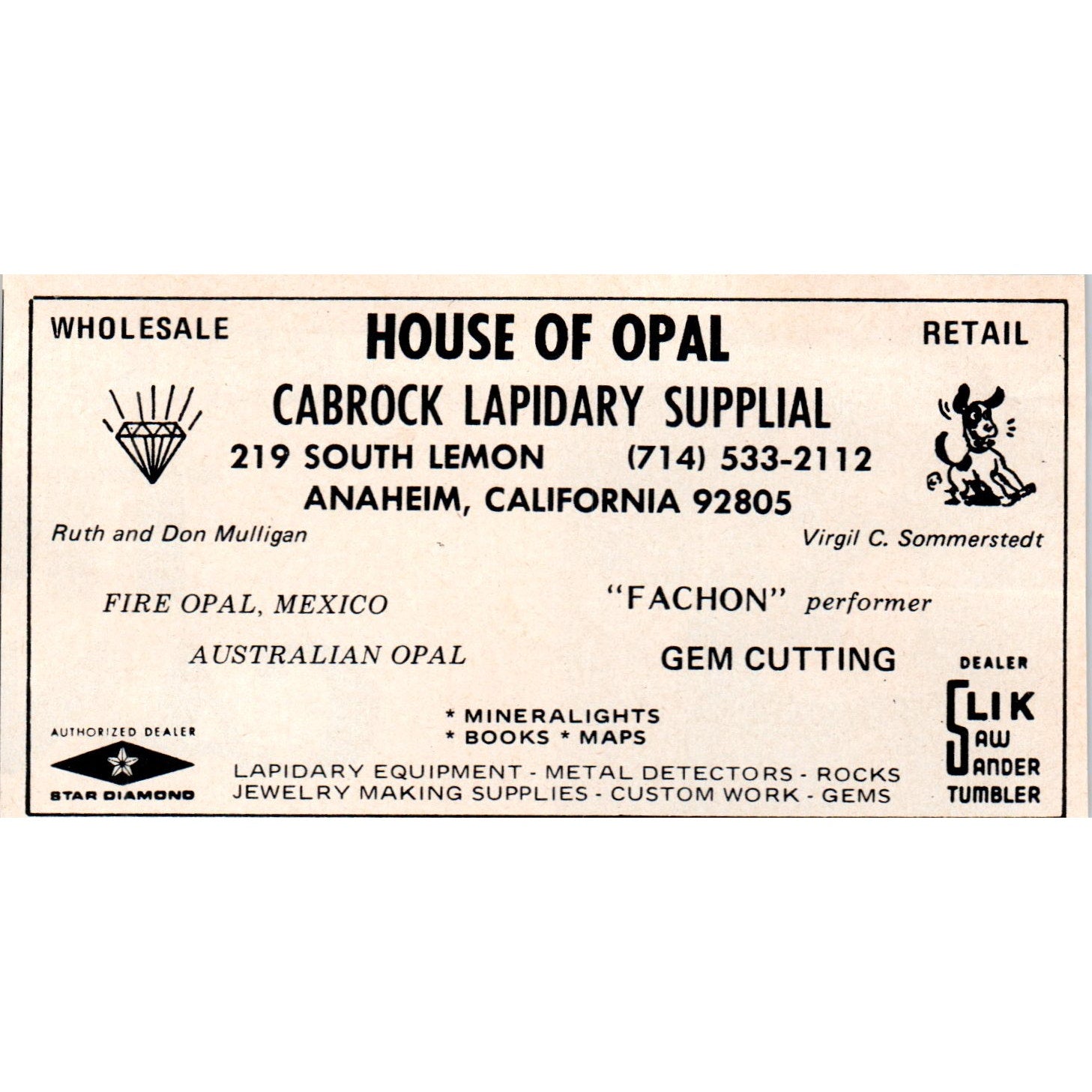 House of Opal Cabrock Lapidary Supplial Anaheim CA 1971 Magazine Ad AD8-R9