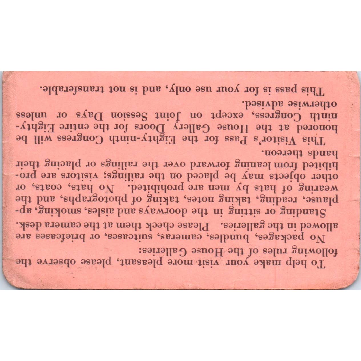 House of Representatives Visitor Pass 1966 Stanley L. Greigg TK1-P6
