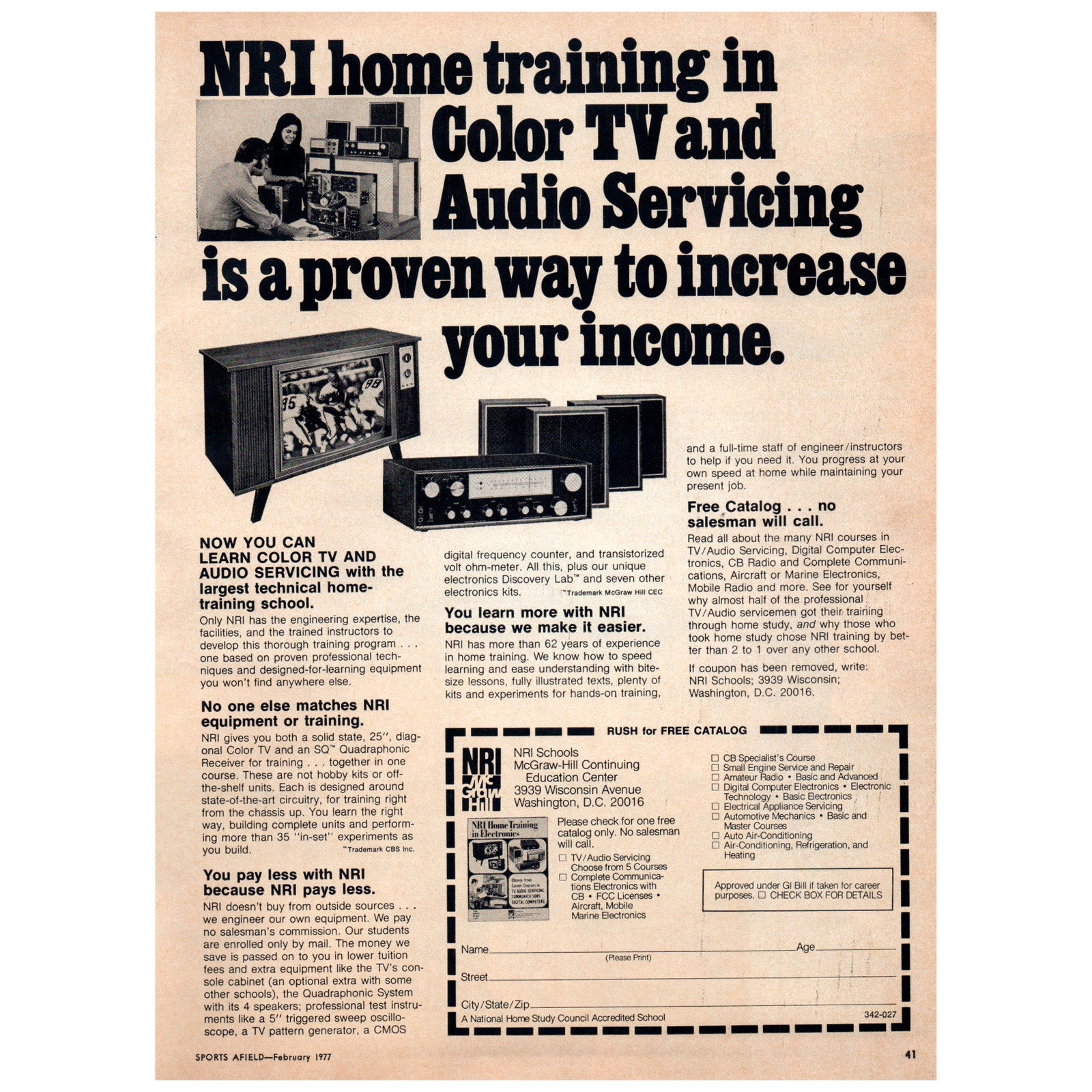 Has a ripple. Measures approx 8x11. Original piece from Feb 1977 Sports Afield Magazine. There be some light staining, tears, and/or other signs of wear and tear. See pics for condition.