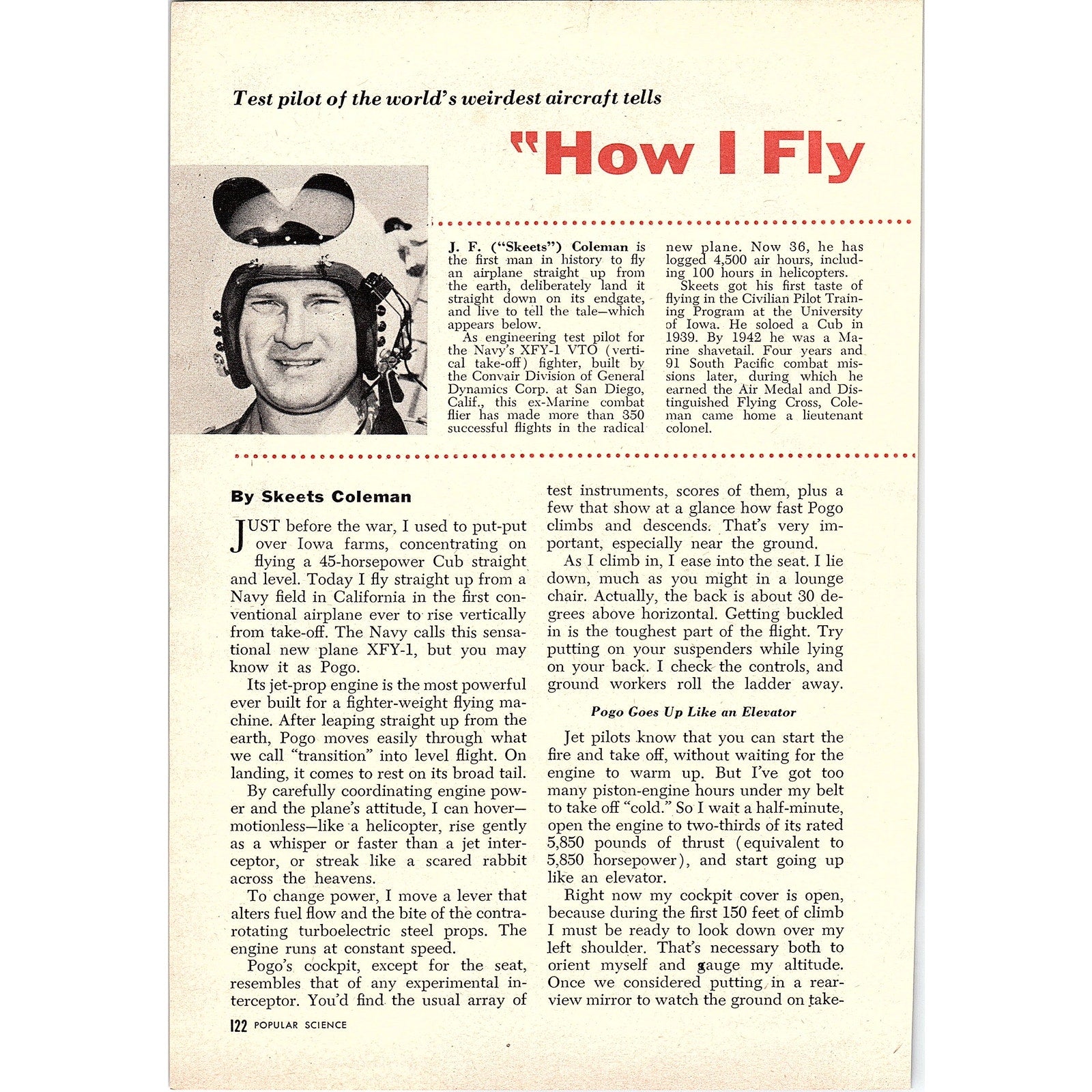 How I Fly the Pogo Plane Skeets Coleman 3-Page 1955 Article AG1-4