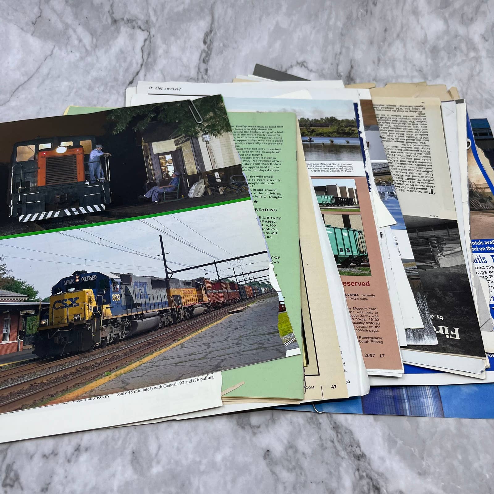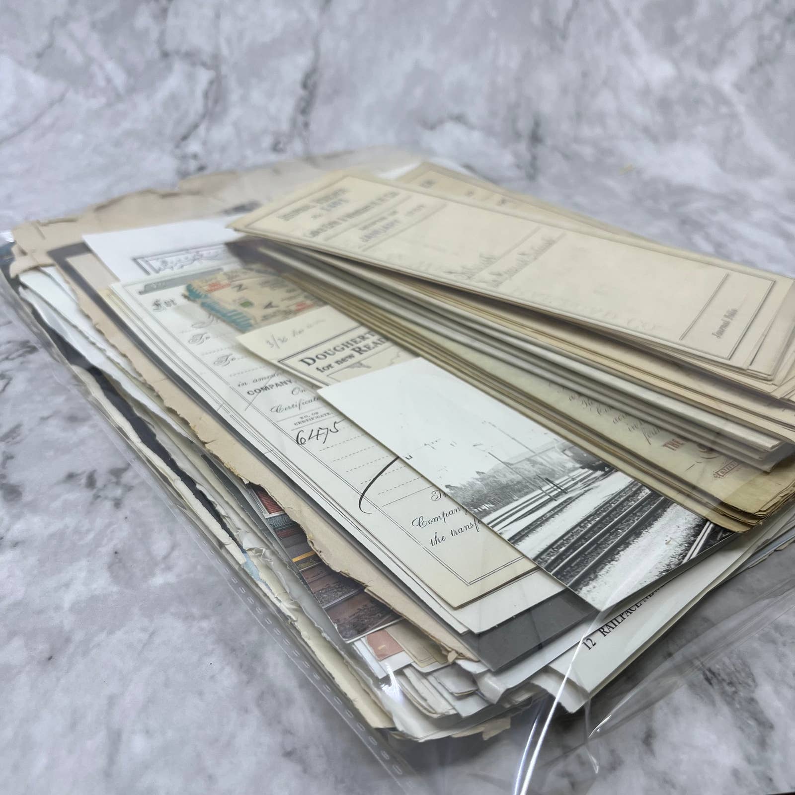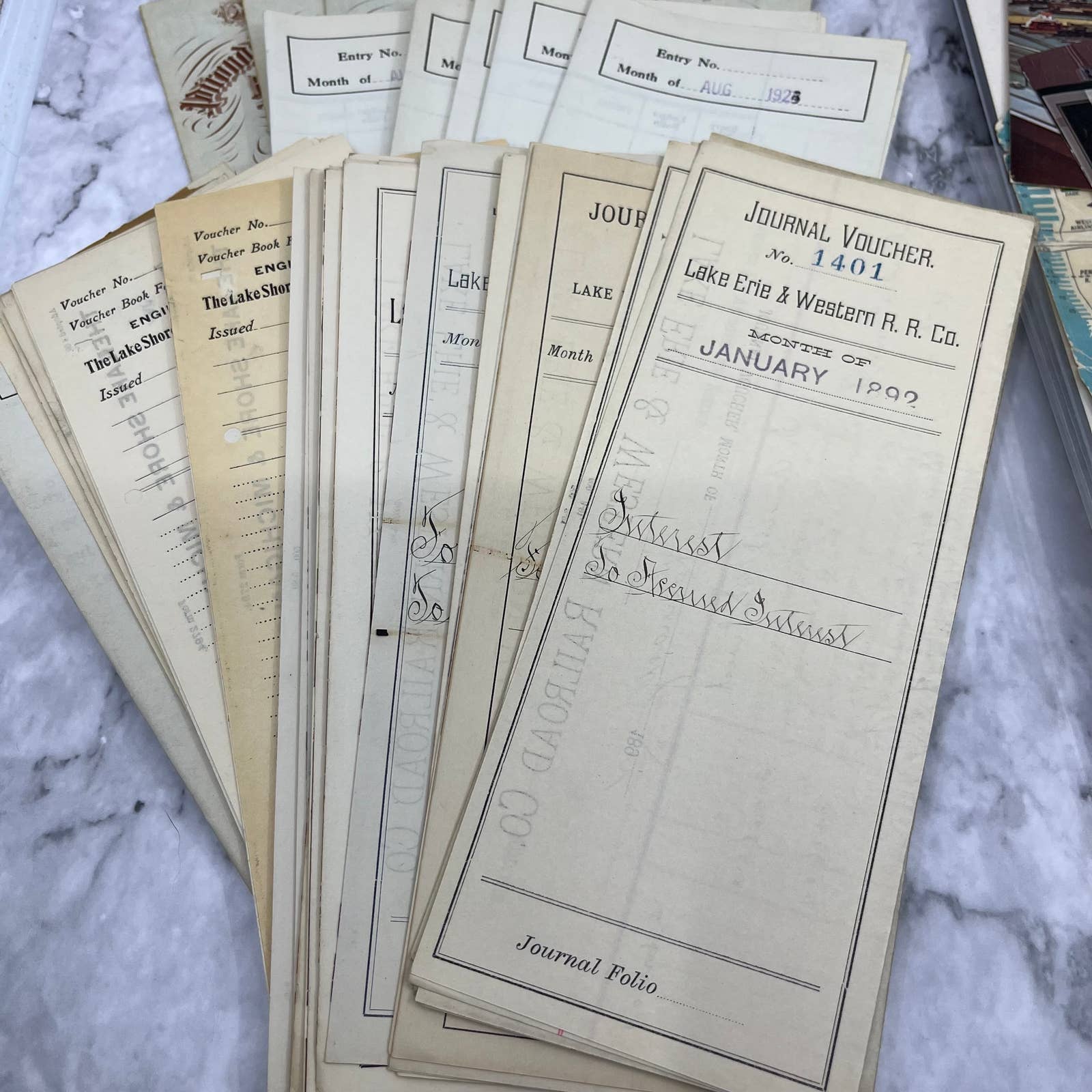 See pics for condition. Documents dating back to 1871. Multie railroads including Lake Erie & Western RR Co, The Lake Shore and Michigan Southern Railway Co and Toledo St. Louis and Western Railroad Company. Also includes a big stack of clippings from magazines and a couple newer postcards.