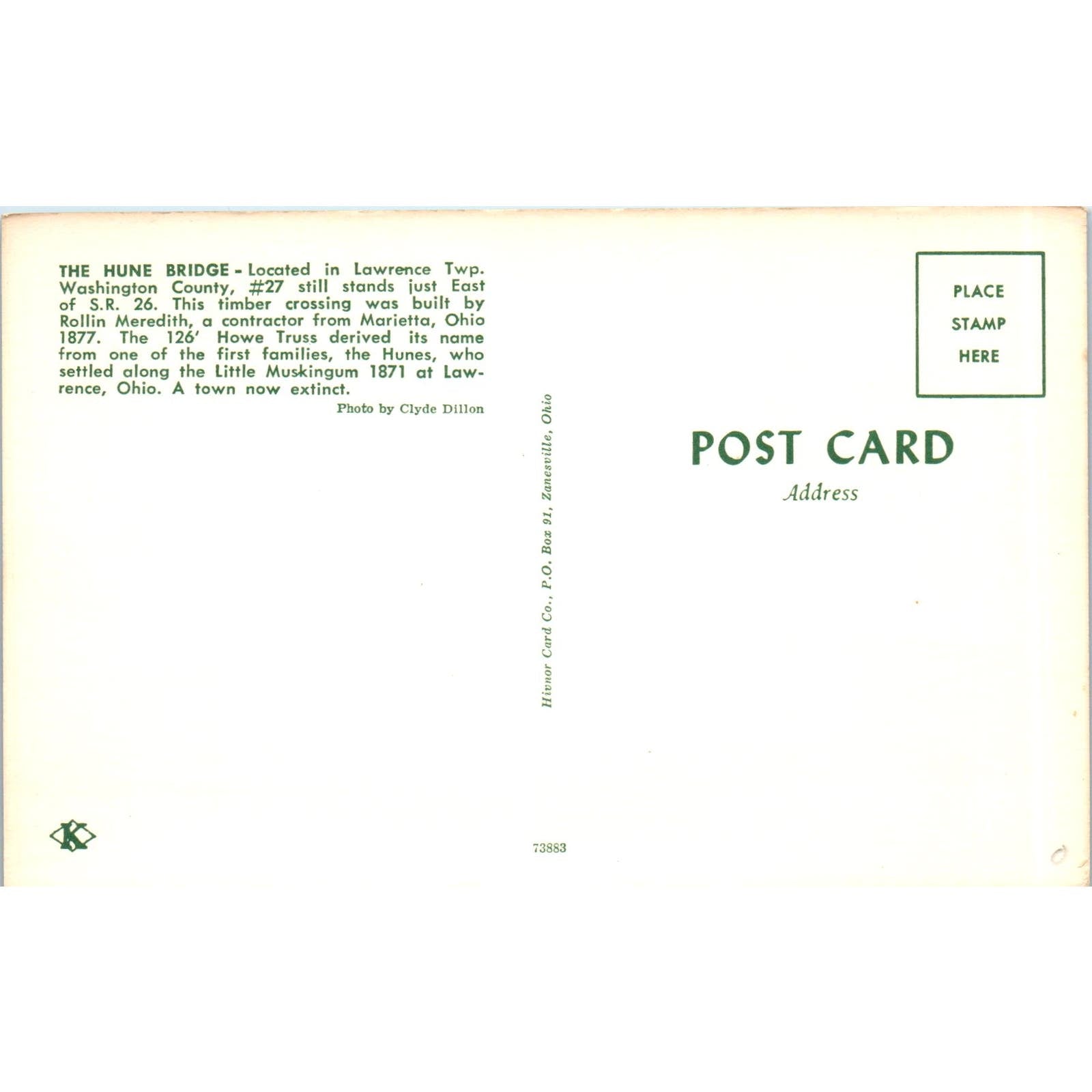 Hune Bridge Washington County 27 Lawrence OH Vintage Covered Bridge Postcard PC12