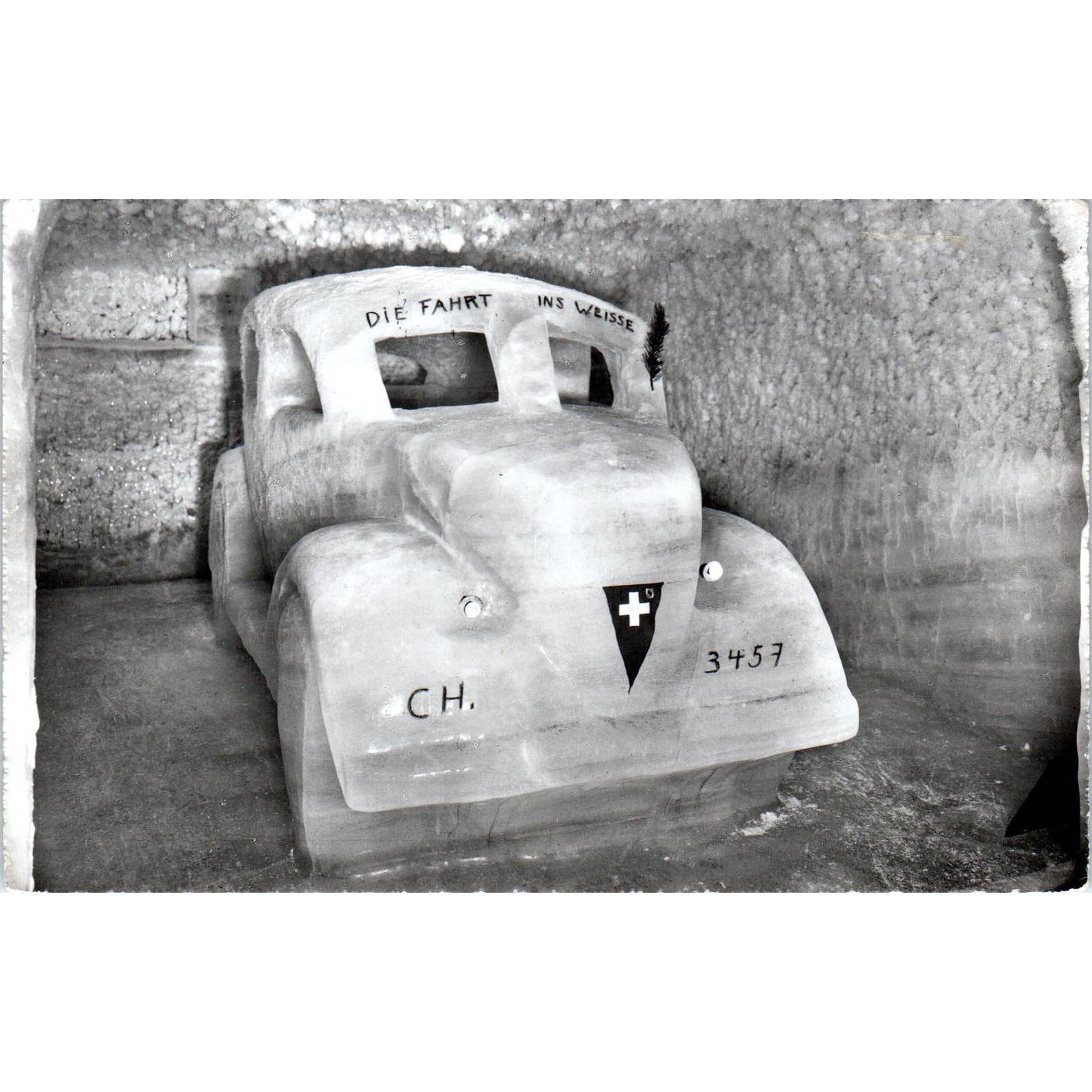 Ice Sculpture Car "Die Fahrt ins Weisse" German VW Original RPPC Postcard TJ9-P1